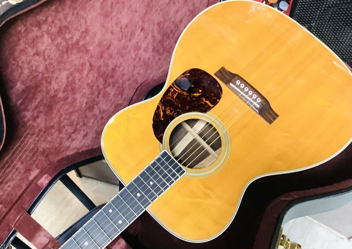 グランド・オーディトリアムというトリプル・オゥよりもひとまわり大きなボディサイズと35と同じスリーピース・バックが特徴。ふくよかな音質と鳴りのいい個体。ビートルズのプロデューサー、ジョージ・マーティンが愛したモデルとしても有名で、スタジオ録音に最適と太鼓判を押されたギターです。現在は製造されてない貴重なアイティム