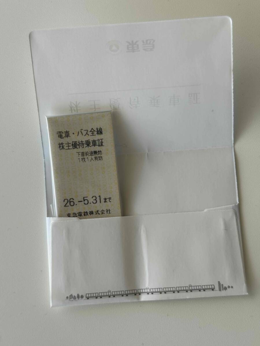 最近送られてきた「東急電鉄 株主優待乗車証 電車・バス全線 切符式5枚 2026年5月31日まで」です。