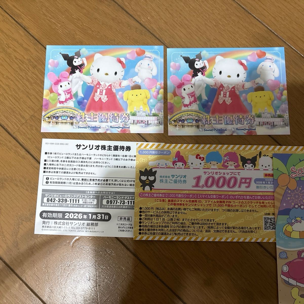 サンリオの株主優待券3枚とサンリオショップ1000円券のセットです。