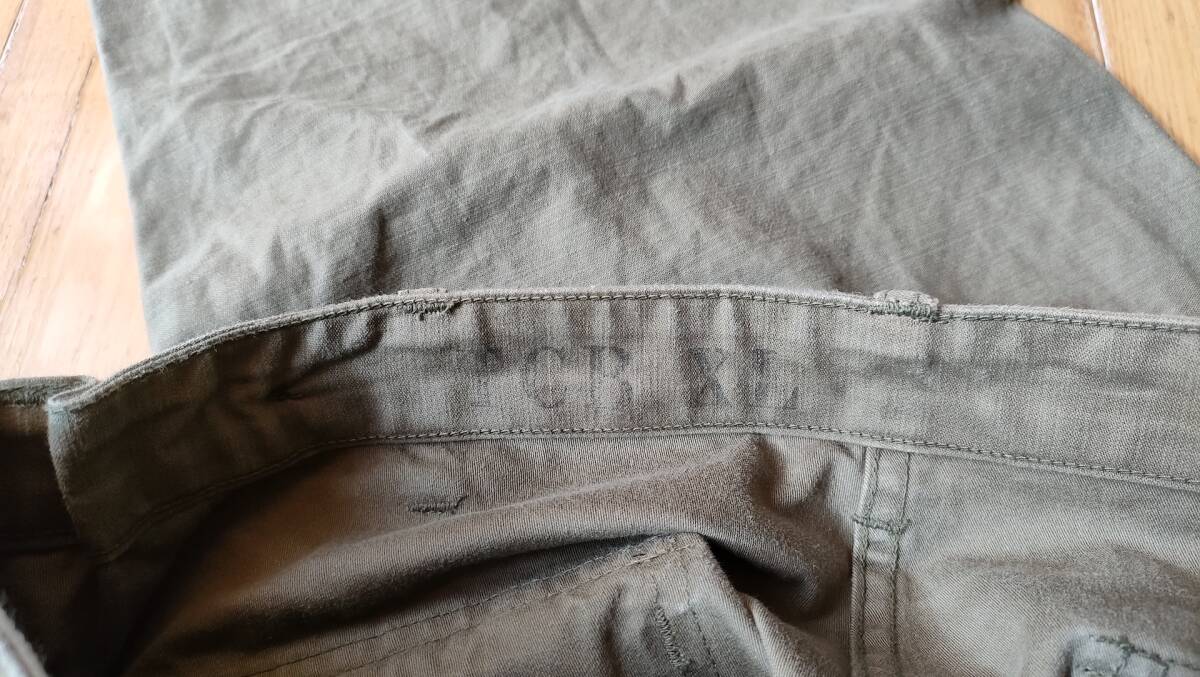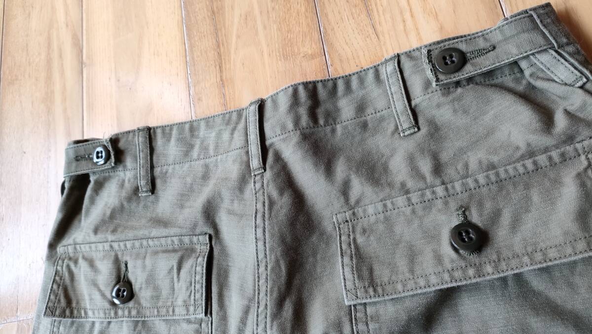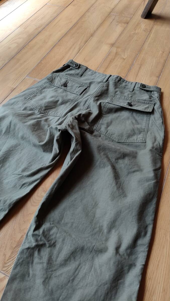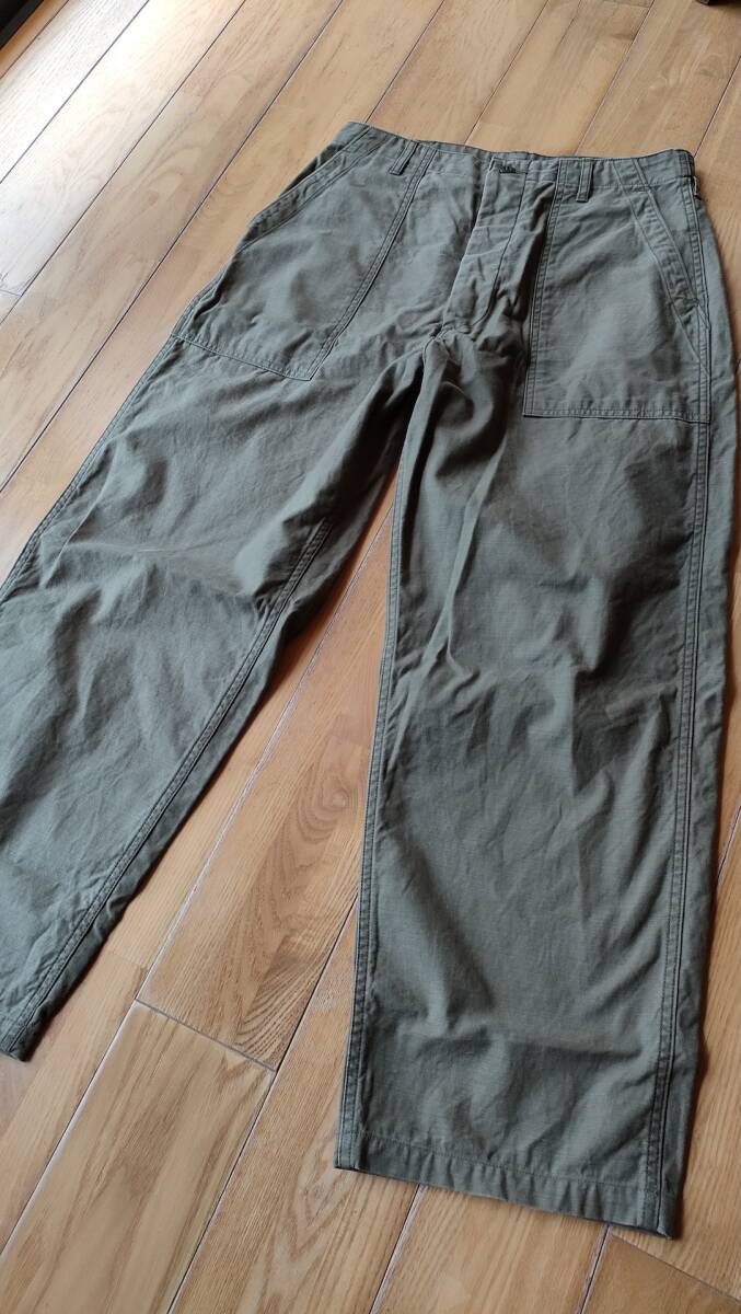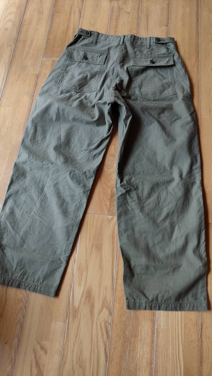 TCBベイカーズパンツ。中古古着。まだカーキ色は色濃くは残っております。裾を短めにしてカッコよく着用してました。若干の着用感はあります。