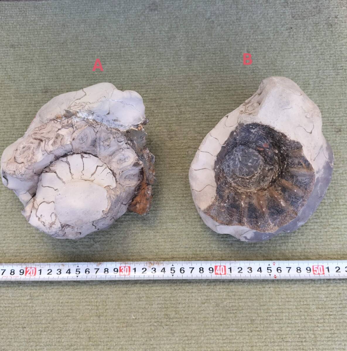 ☆★北海道のアンモナイト 道北産地のユーパキ2個 手のひらやや大きめ 美品 4.1★☆★