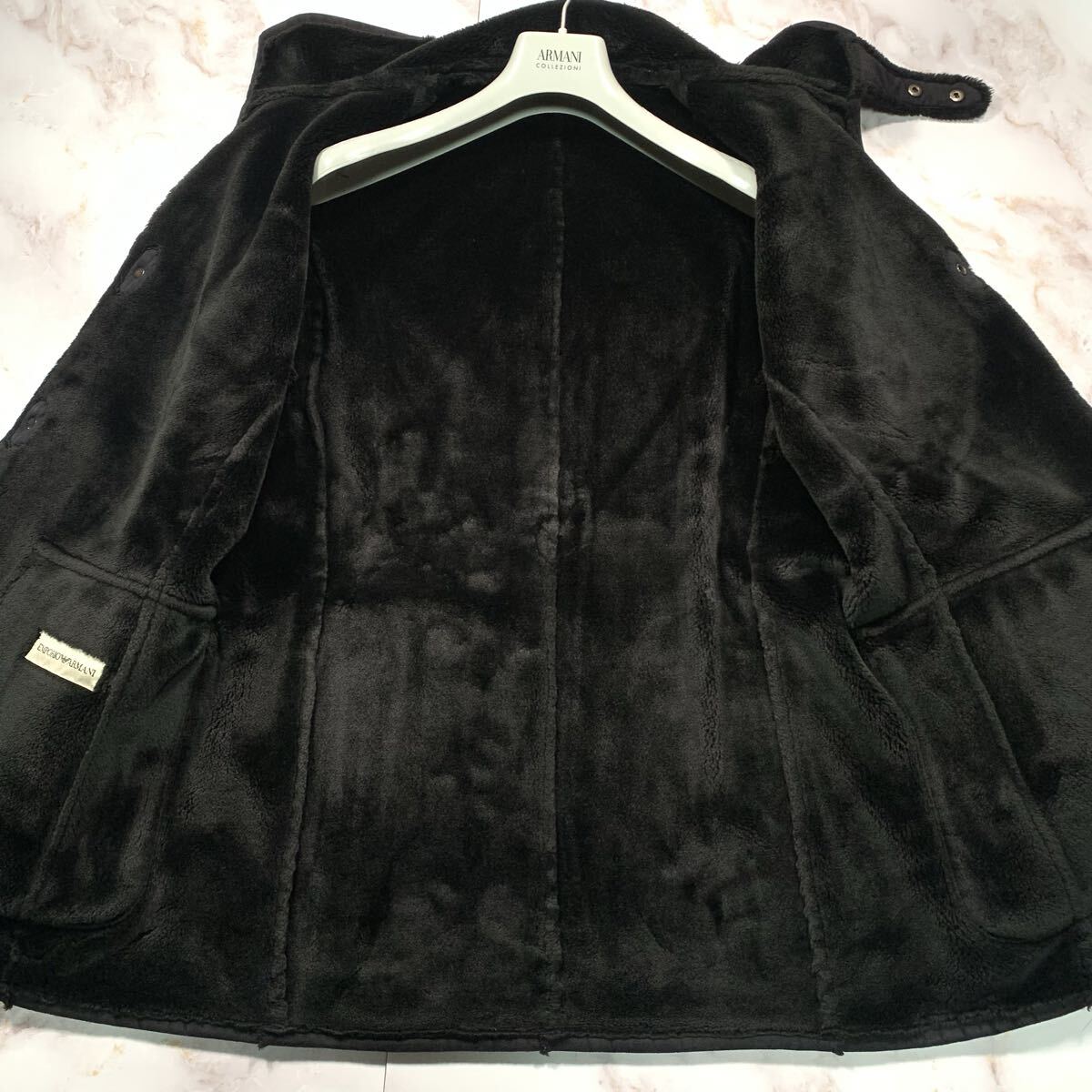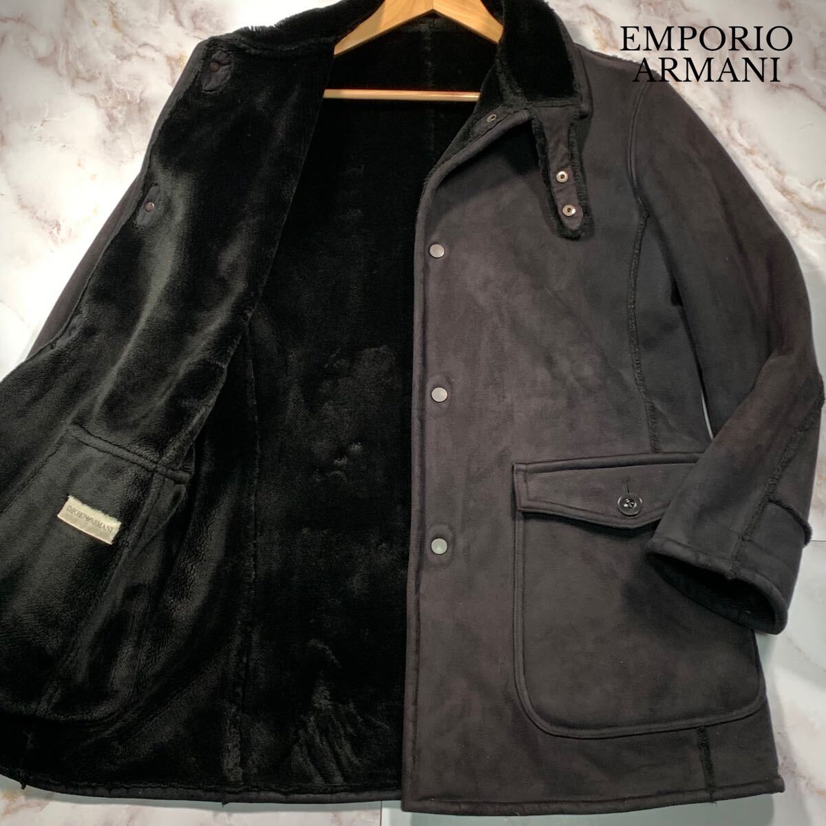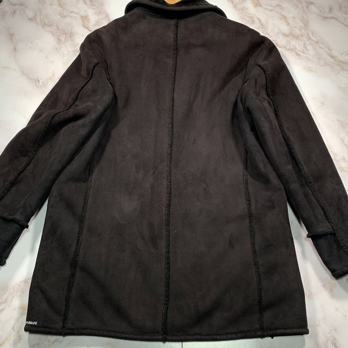 48/XL相当●EMPORIO ARMANI エンポリオアルマーニ ムートンコート 48 ミドル丈 全面ボア ジャケット ブラック 黒 メンズ 極暖