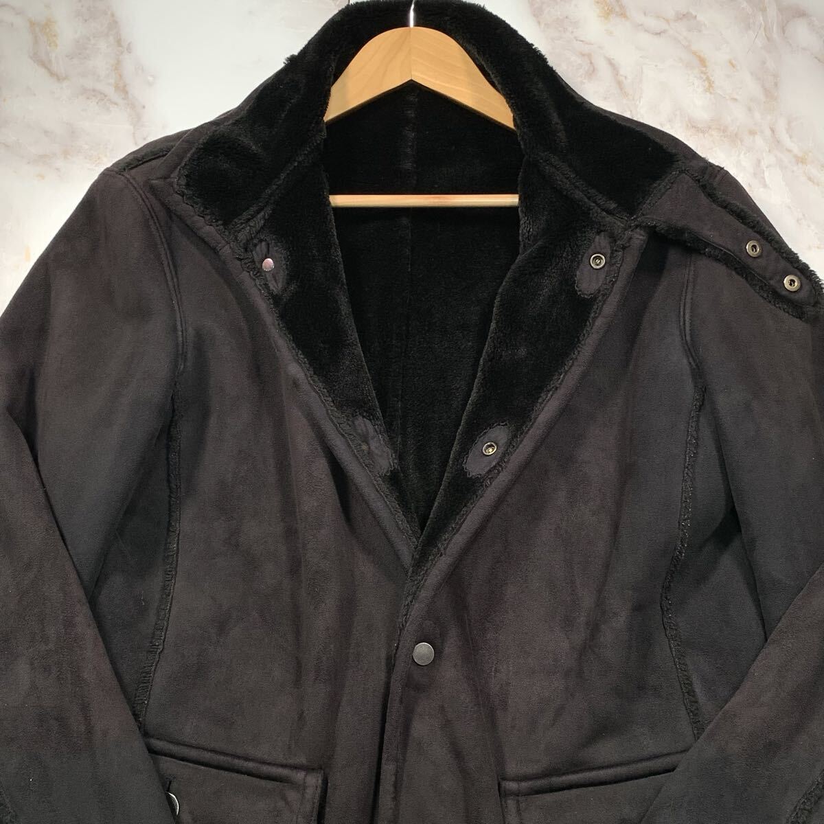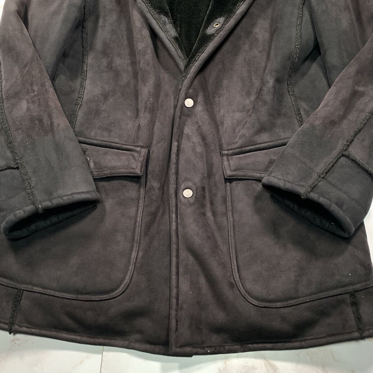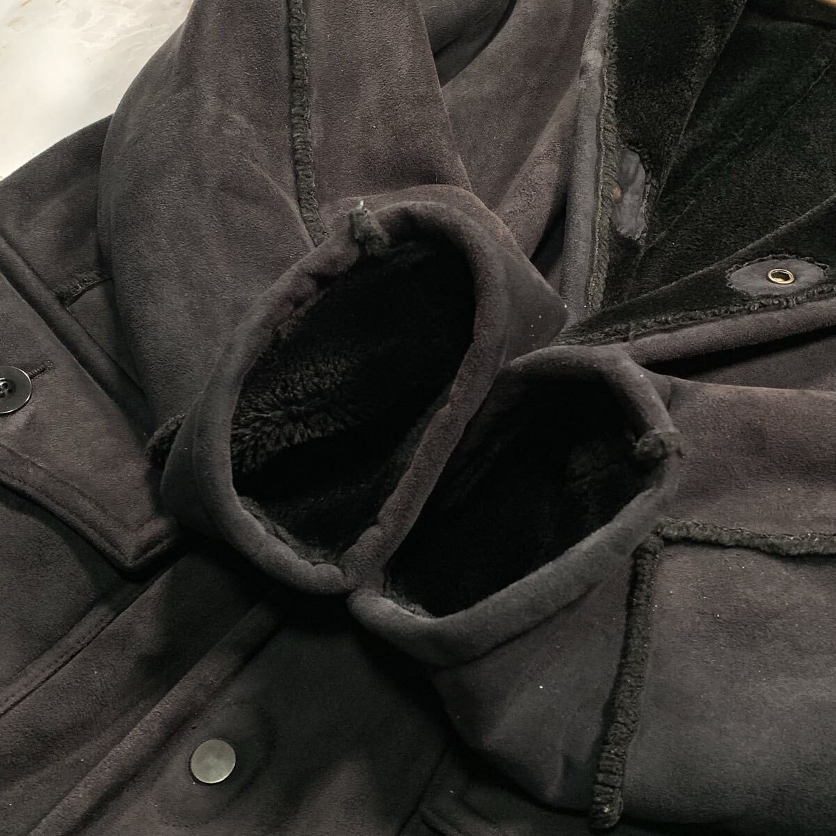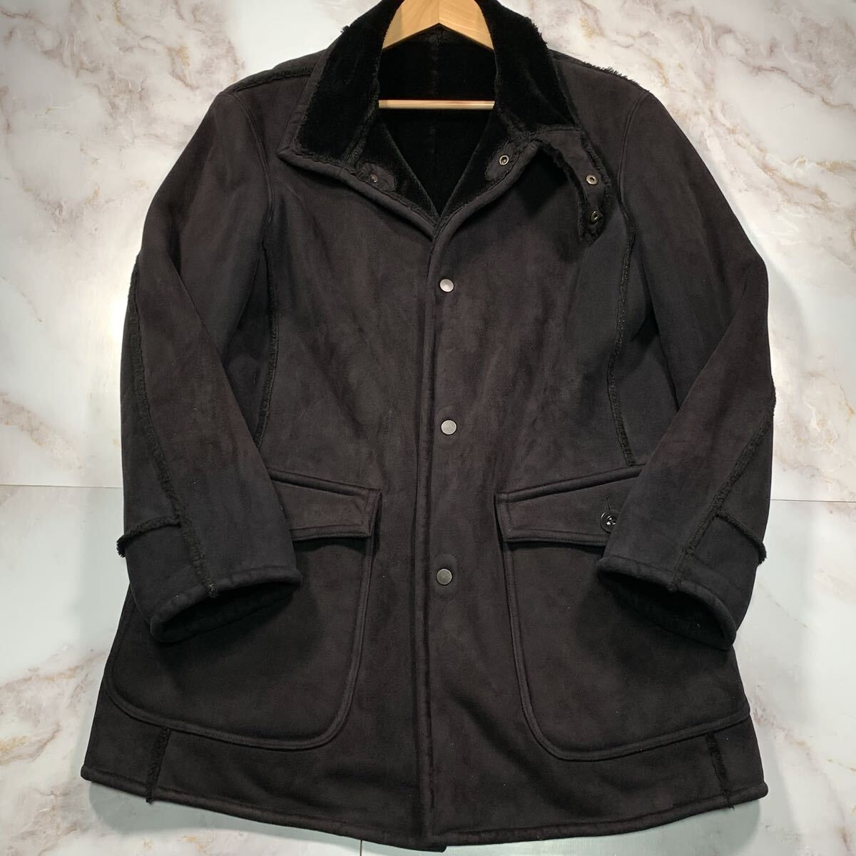 48/XL相当●EMPORIO ARMANI エンポリオアルマーニ ムートンコート 48 ミドル丈 全面ボア ジャケット ブラック 黒 メンズ 極暖