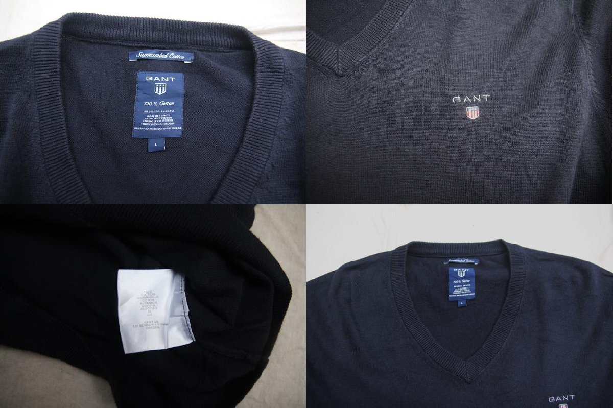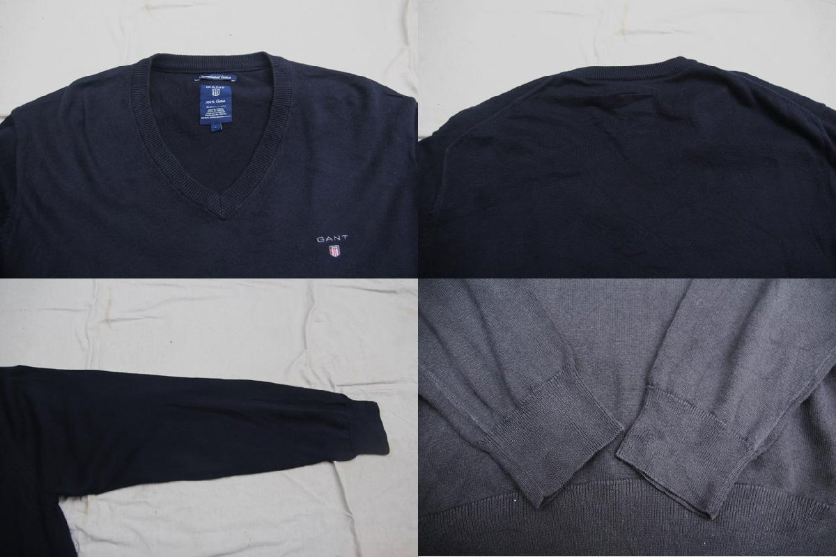 90s 00s VINTAGE ヴィンテージ USED 古着 Gant V-Neck Cotton Knit Sweater Vネック コットンニットセーター Navy 紺 綺麗目 トラッド L