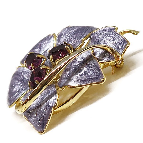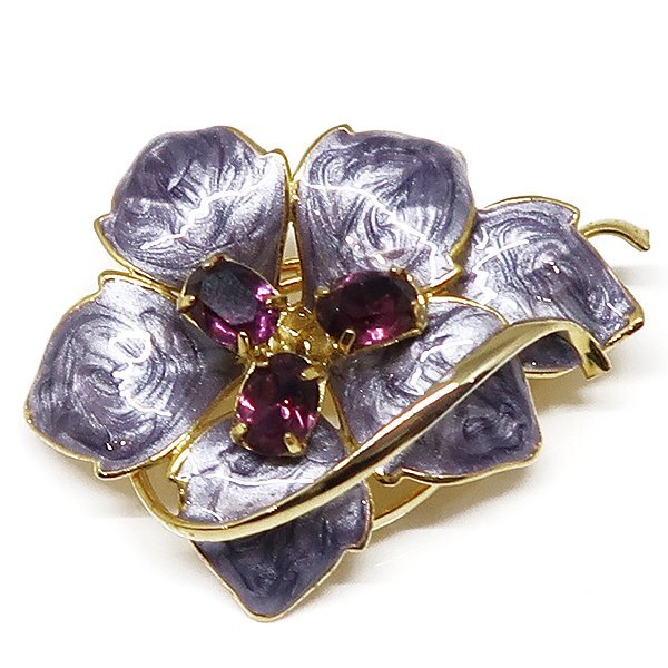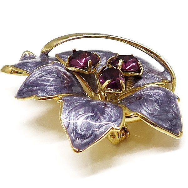 DKG★送料無料★BVA341 ヴィンテージ パープル カラーストーン フラワー ブローチ エナメル フラワーブローチ