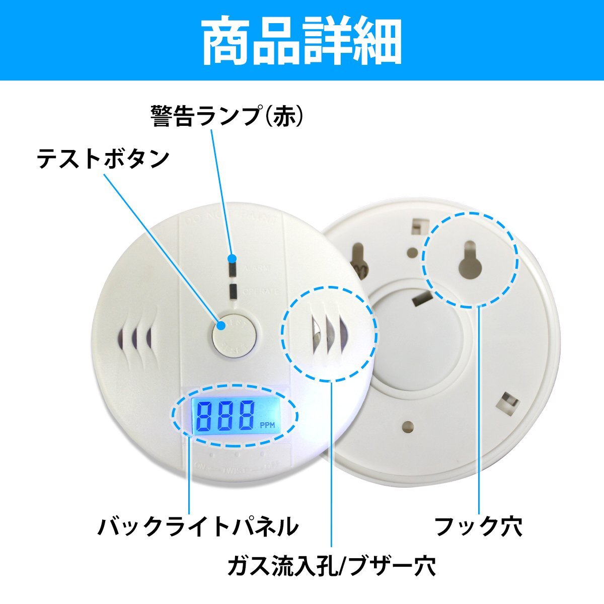 商 品 説 明空気中の一酸化炭素濃度をデジタルで表示し、