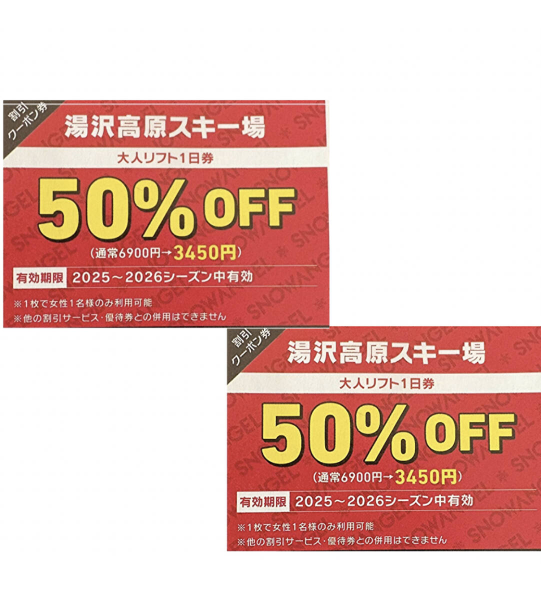 本券1枚で女性1名様分リフト半額券