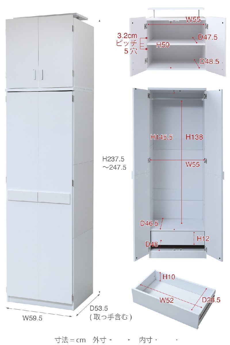 | ■本体サイズ [外寸]幅59.5×奥行53.5×高さ237.5?247.5cm |