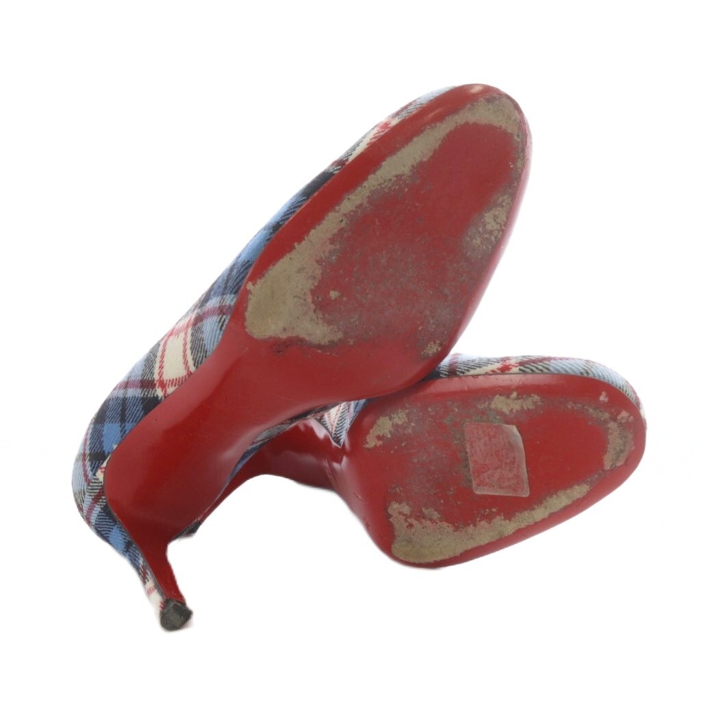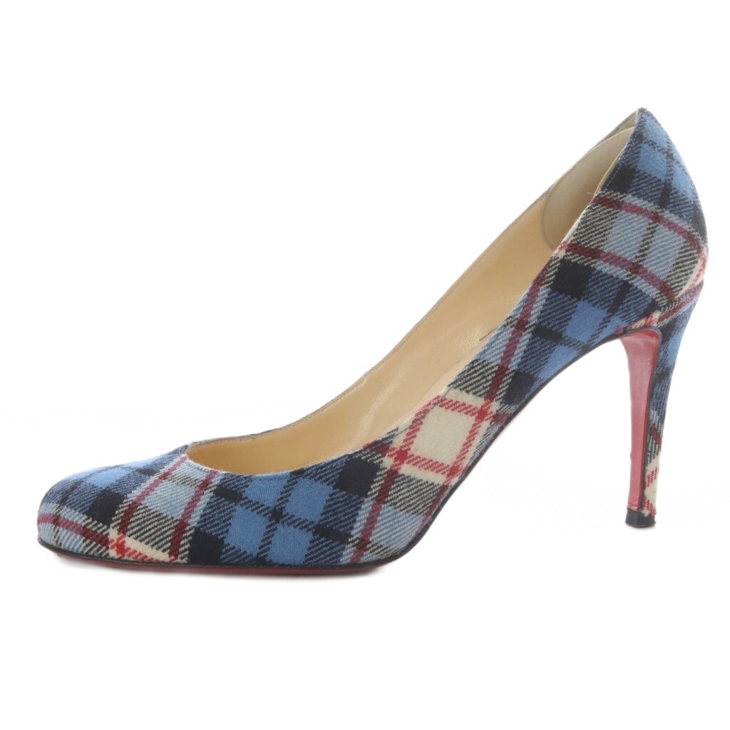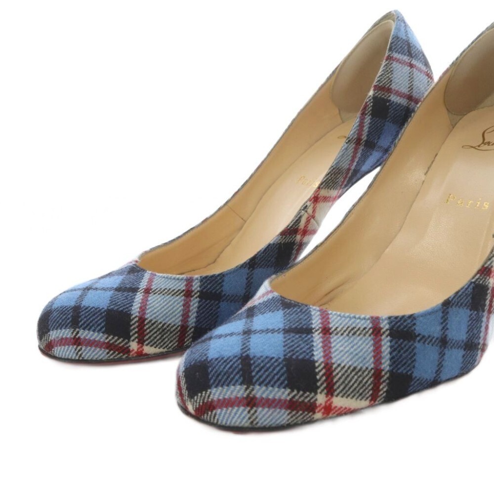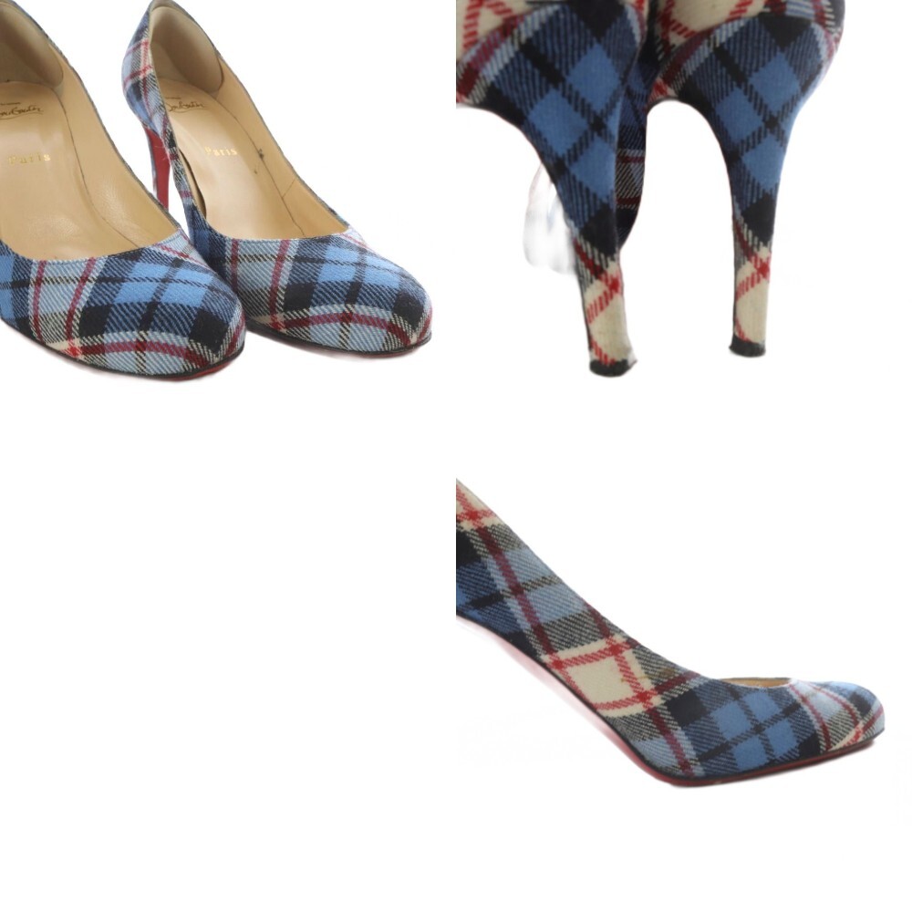 クリスチャンルブタン Christian louboutin パンプス ハイヒール チェック 38 ブルー /YO19 レディース