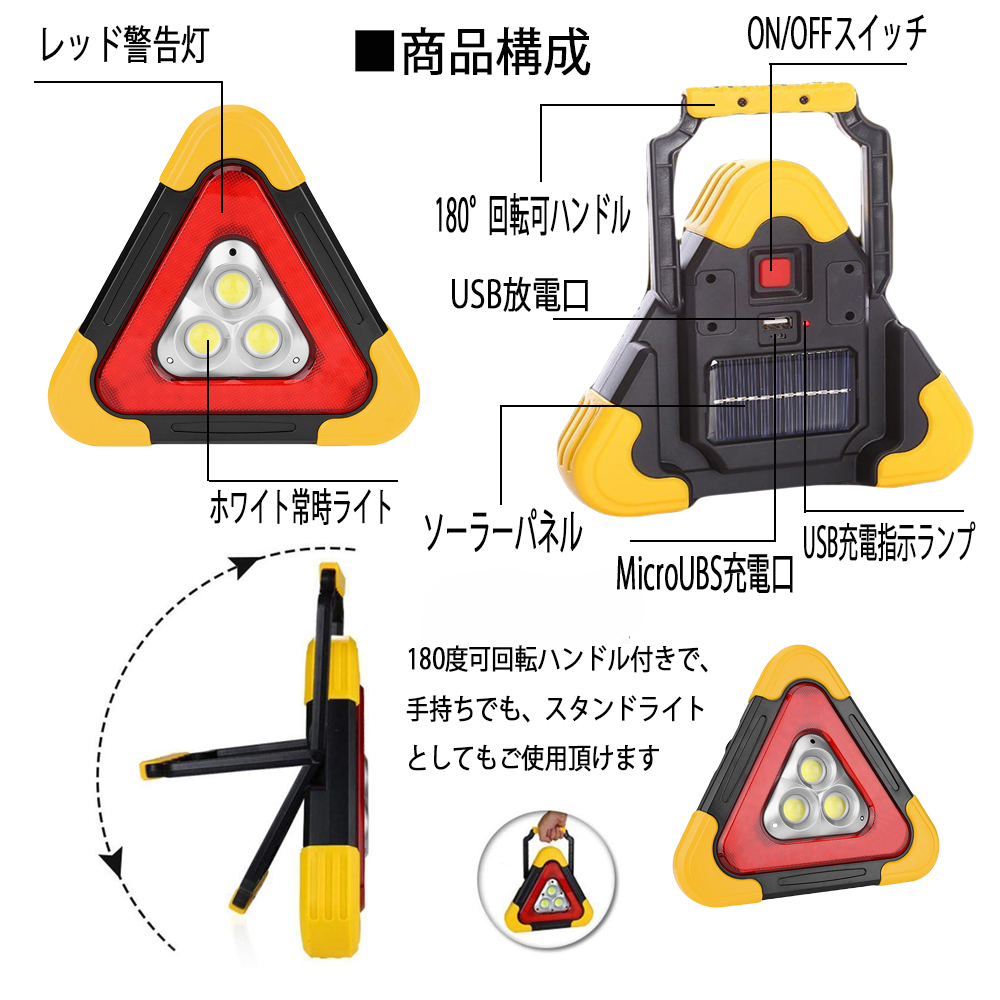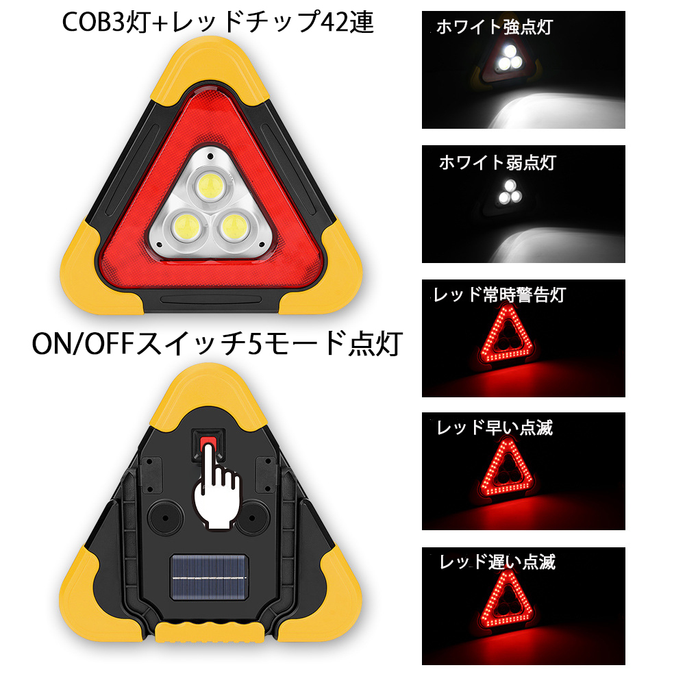 三角停止板 三角表示板 LEDライト 作業灯 車のトラブル 緊急 停止 事故 路上 追突 防止 キャンプ アウトドア 夜釣り 送料無料
