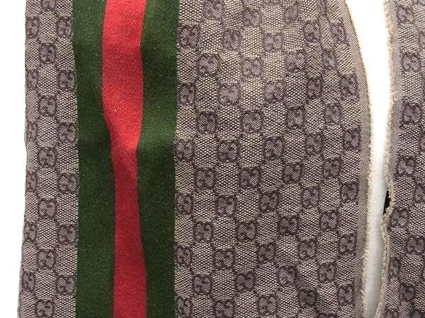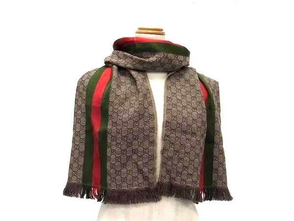 1円 GUCCI グッチ シェリーライン GG柄 フリンジ マフラー ストール ショール 防寒具 メンズ レディース ブラウン系 FH5995