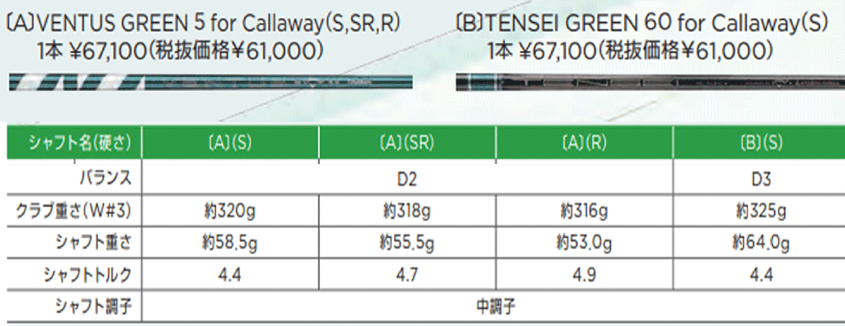 ■VENTUS GREEN-50 for CALLAWAY カーボンシャフト■