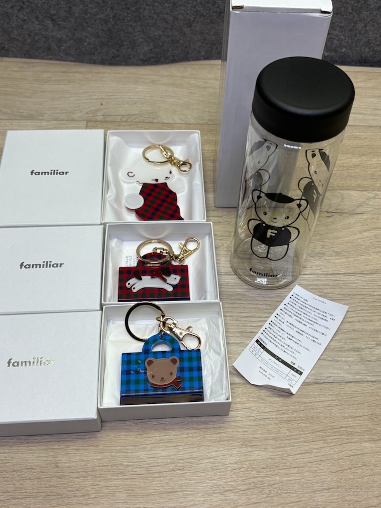 未使用品☆familiar /ファミリア☆チャーム・キーホルダー3点☆500mlスリムクリアボトル