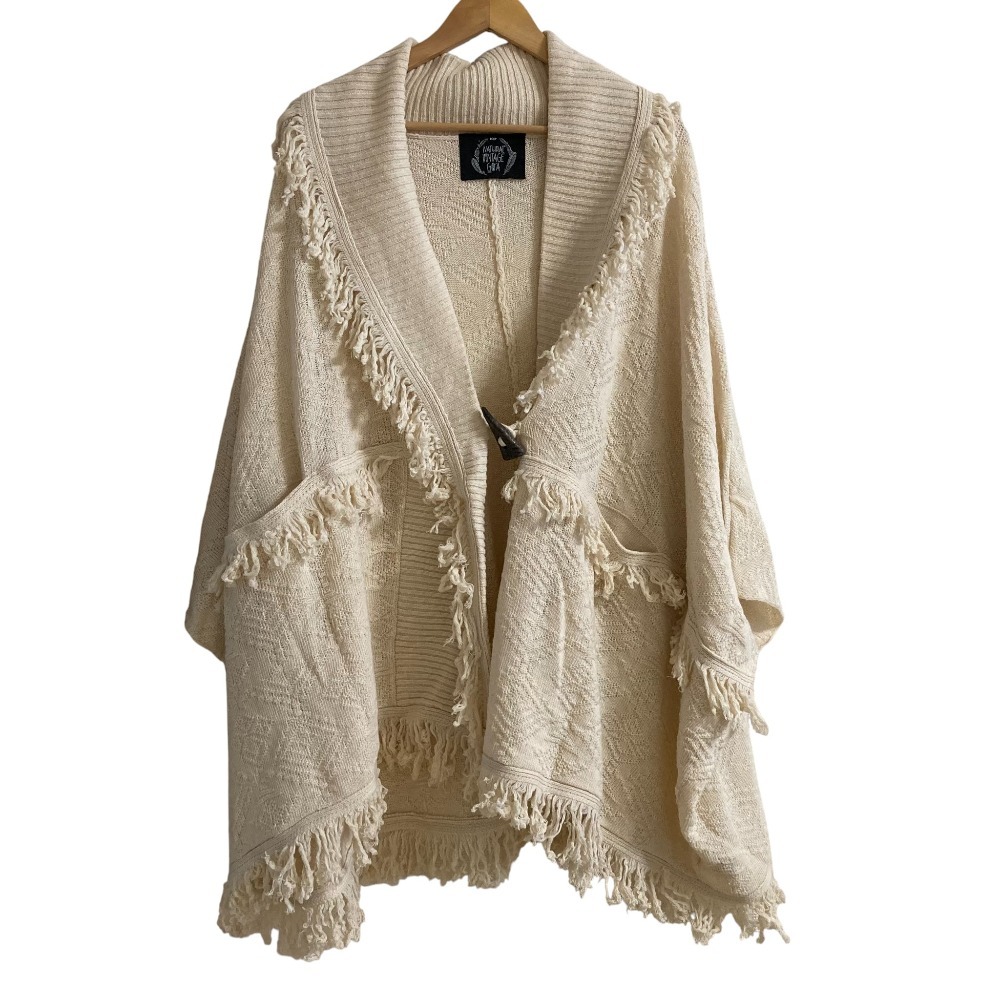 商品名:NATURAL VINTAGE GOA ナチュラルヴィンテージゴア フリンジ ポンチョ ニットカーディガン サイズF アイボリー