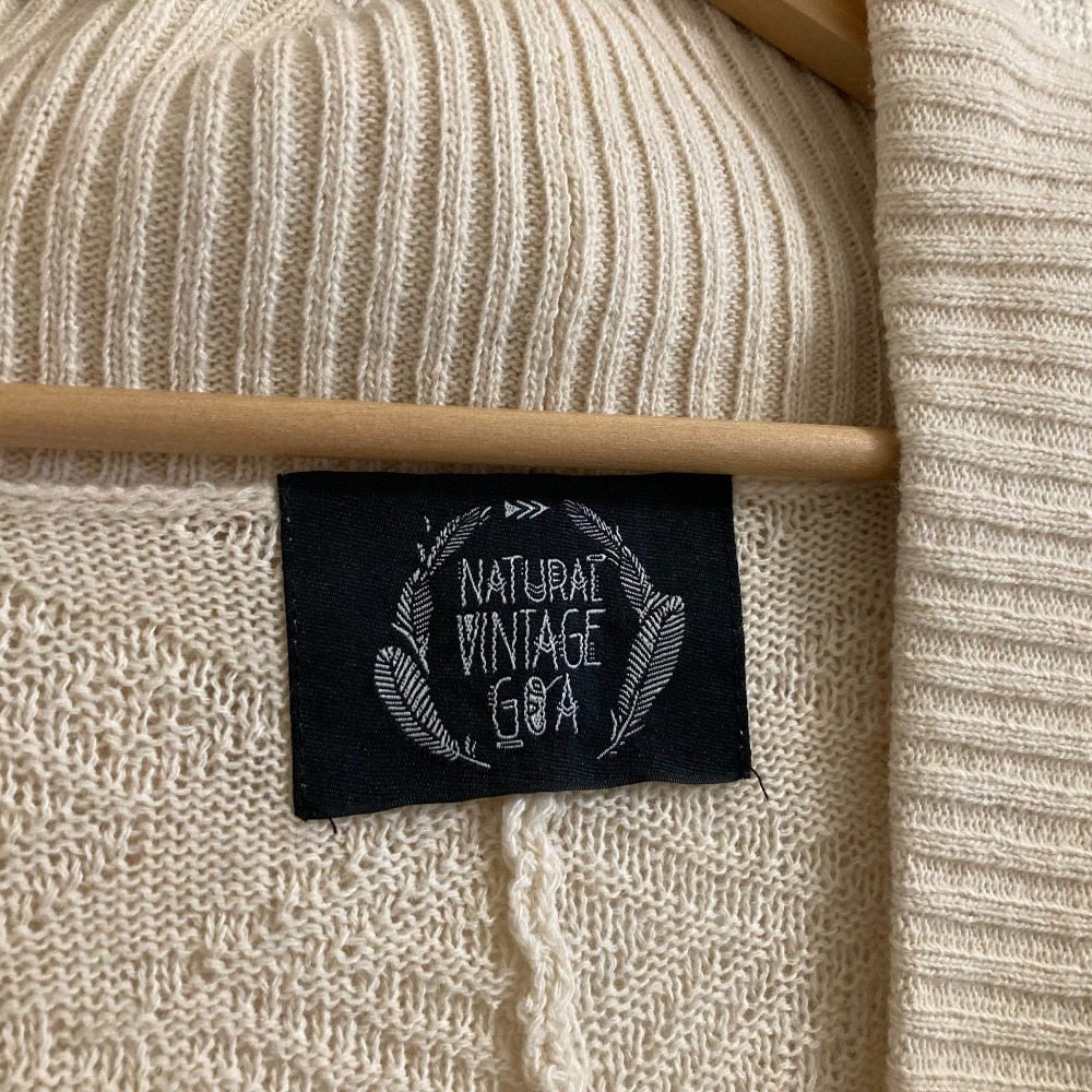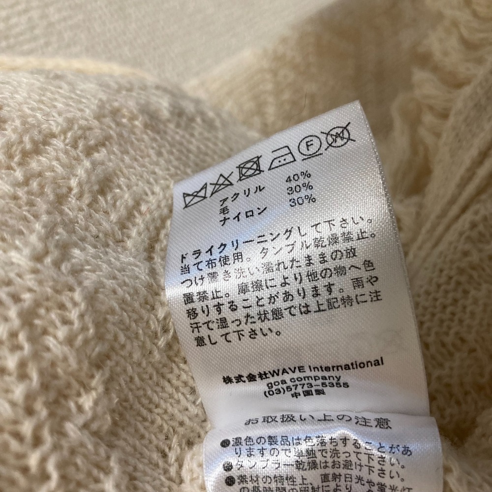 美品 NATURAL VINTAGE GOA ナチュラルヴィンテージゴア フリンジ ポンチョ ニットカーディガン サイズF アイボリー