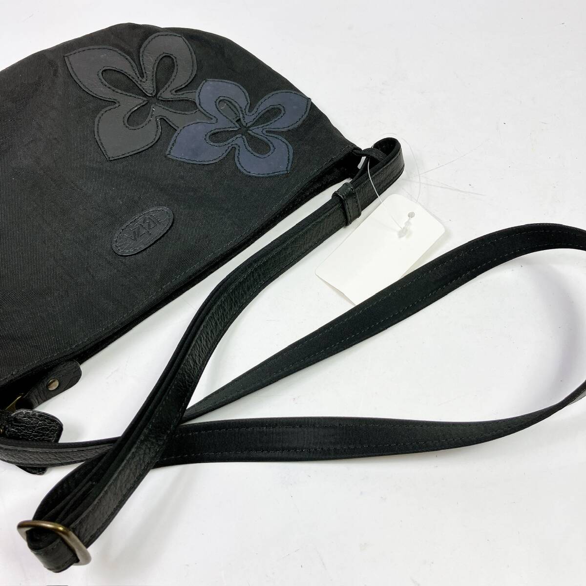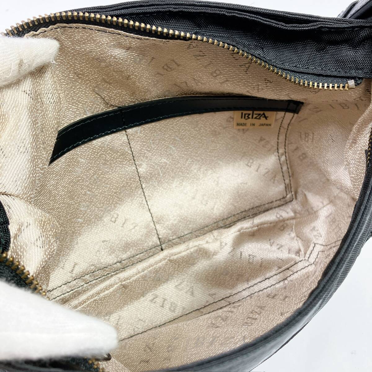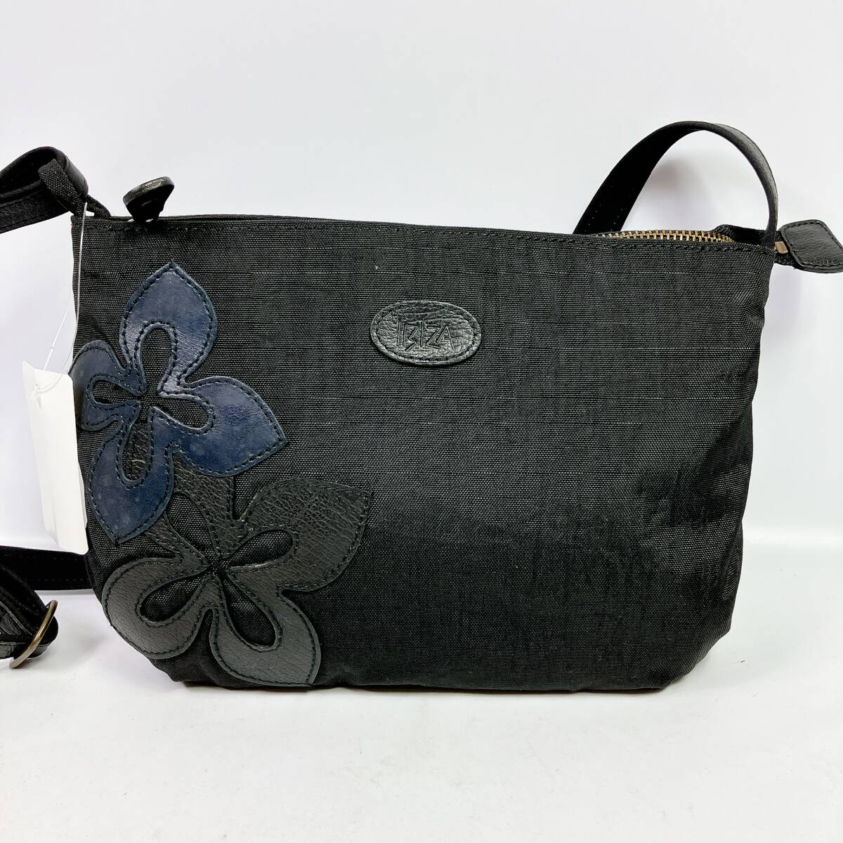 2586−17◯ IBIZA イビザ ハンドバッグ ショルダーバッグ キャンバス 黒 ファスナー 花柄 斜め掛けバッグ ポケット レディース