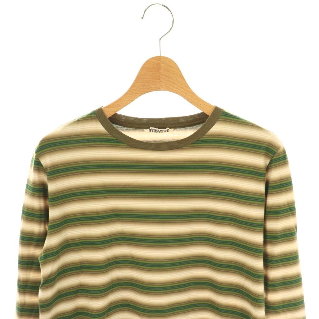 オーラリー AURALEE 25AW GRADIENT STRIPE JERSEY L/S TEE Tシャツ カットソー 長袖 ボーダー コットン 0 ベージュ 緑 A25AP03GJ