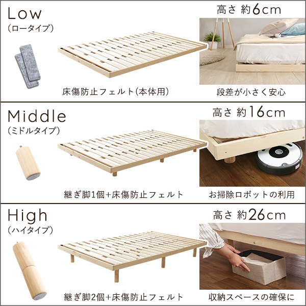 フレーム:天然木(パイン材)、すのこ:積層合板(LVL)