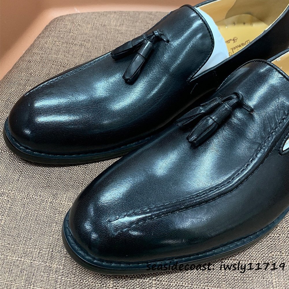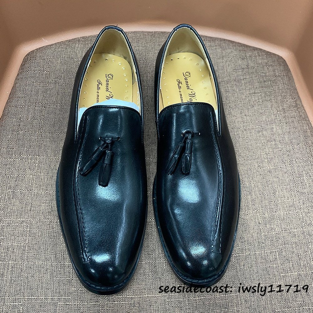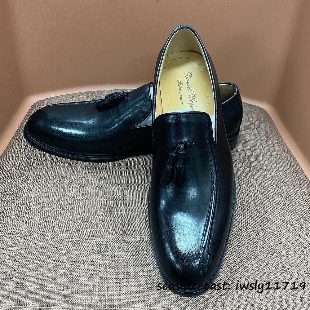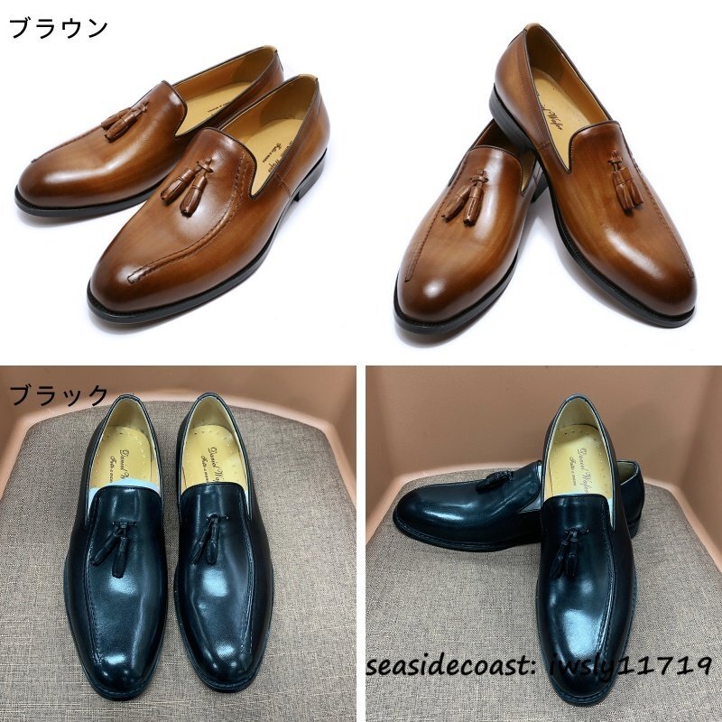 最高級◆レザーシューズ ビジネスシューズ ローファー スリッポン 職人手作り 本革 レザーシューズ 牛革 革靴 紳士靴 新品 ブラック 27.5cm