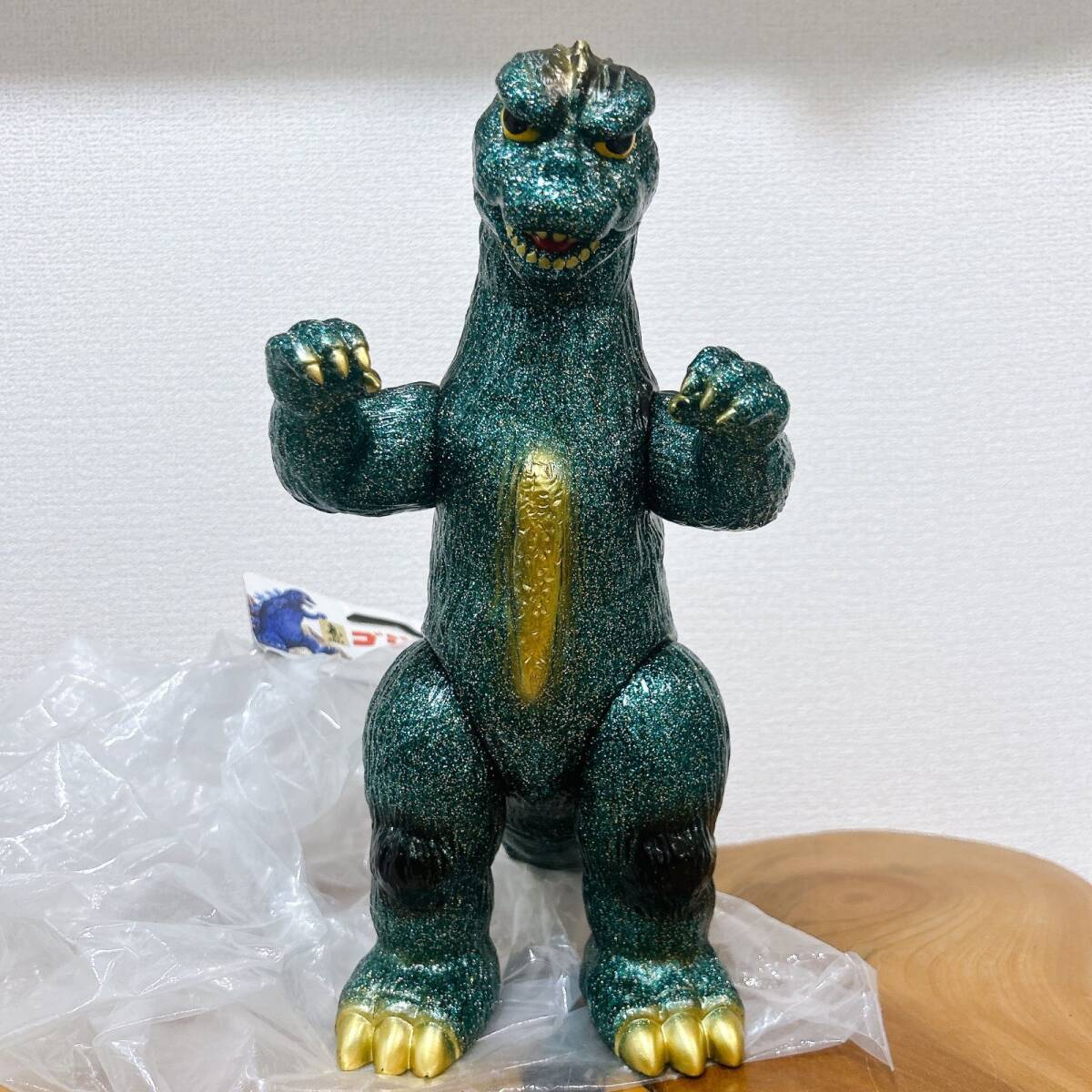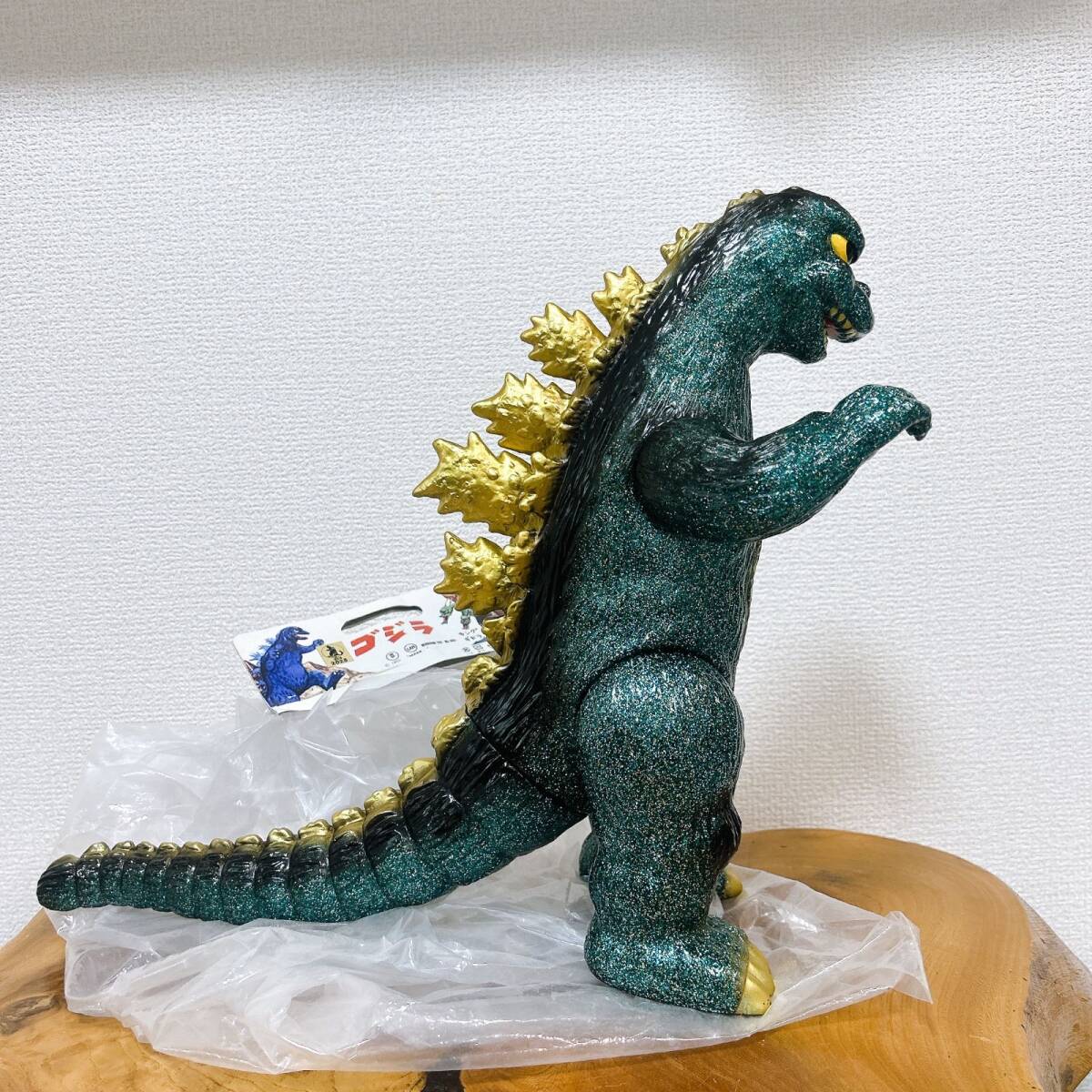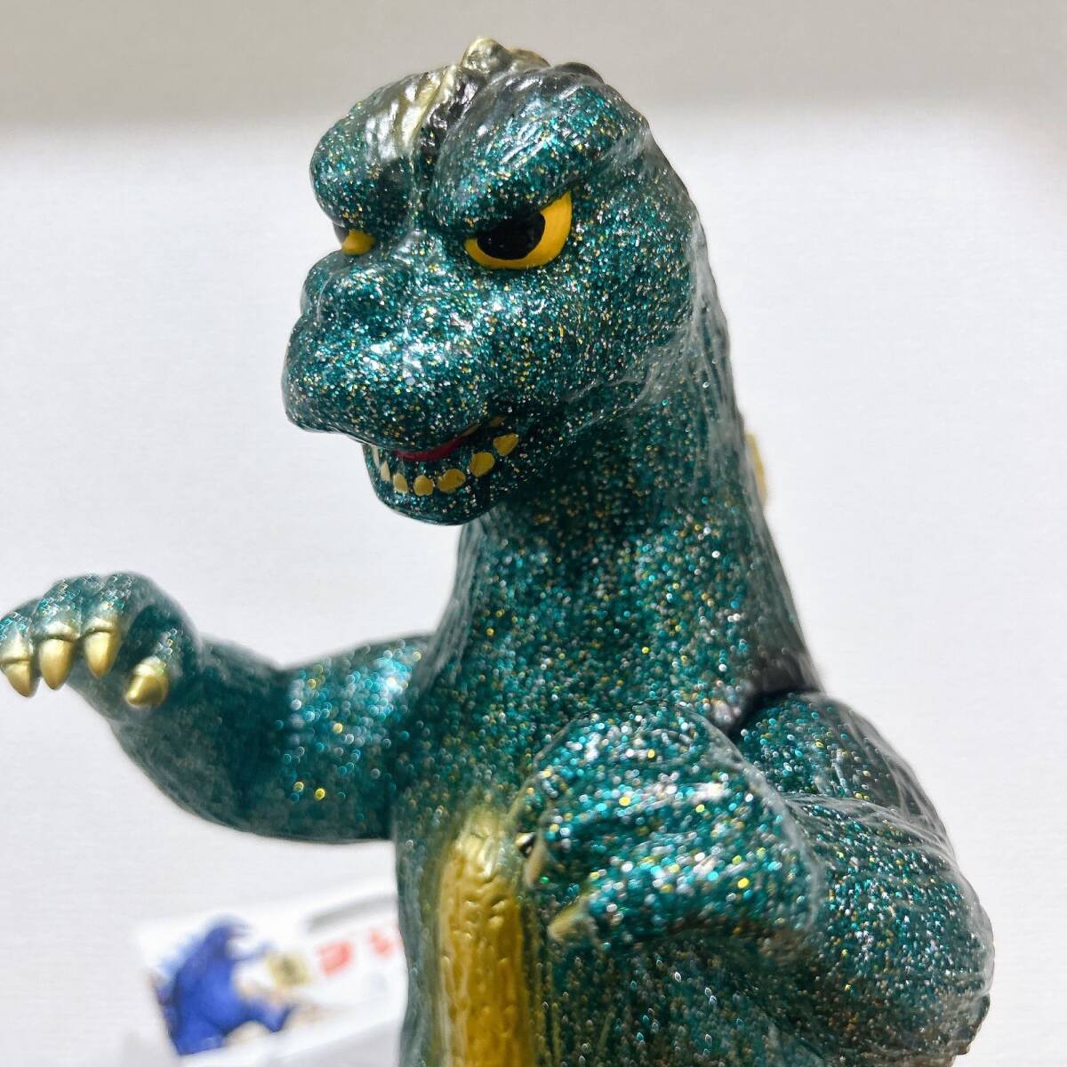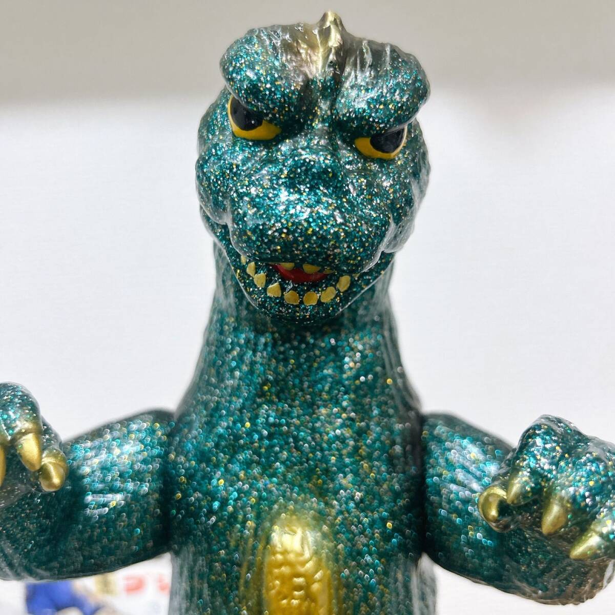 激レア マルサン ラメ入り ゴジラ 黒目 1974 グリーングリッター ソフビ フィギュア