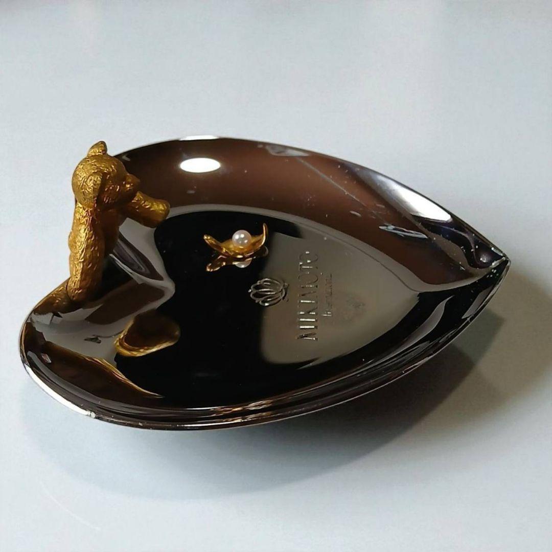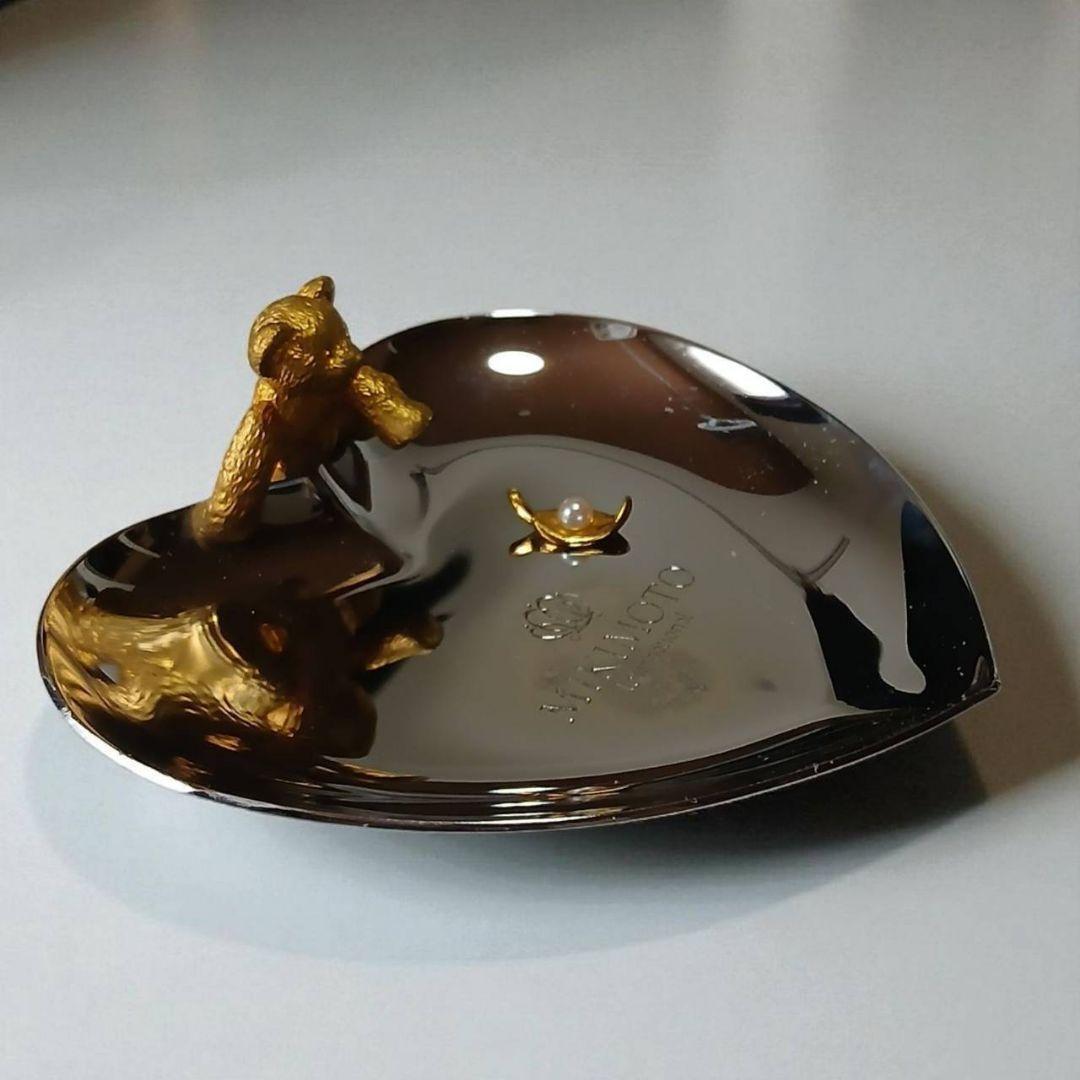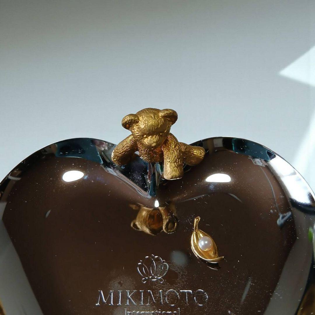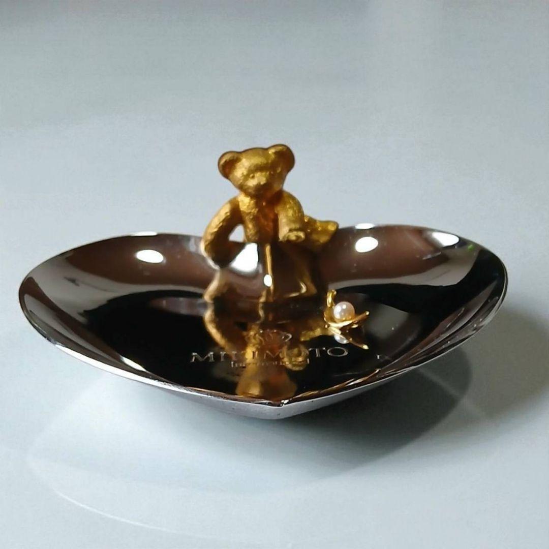 ミキモトの上品なハート型トレーに、ちょこんと座ったクマモチーフが愛らしい小物置きです。