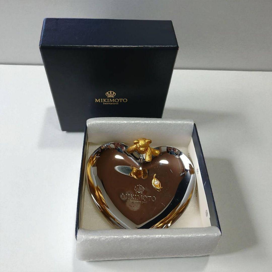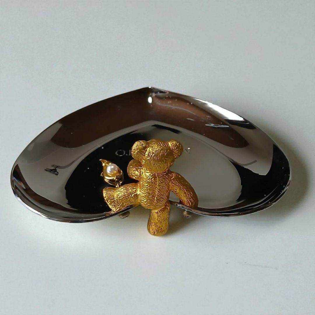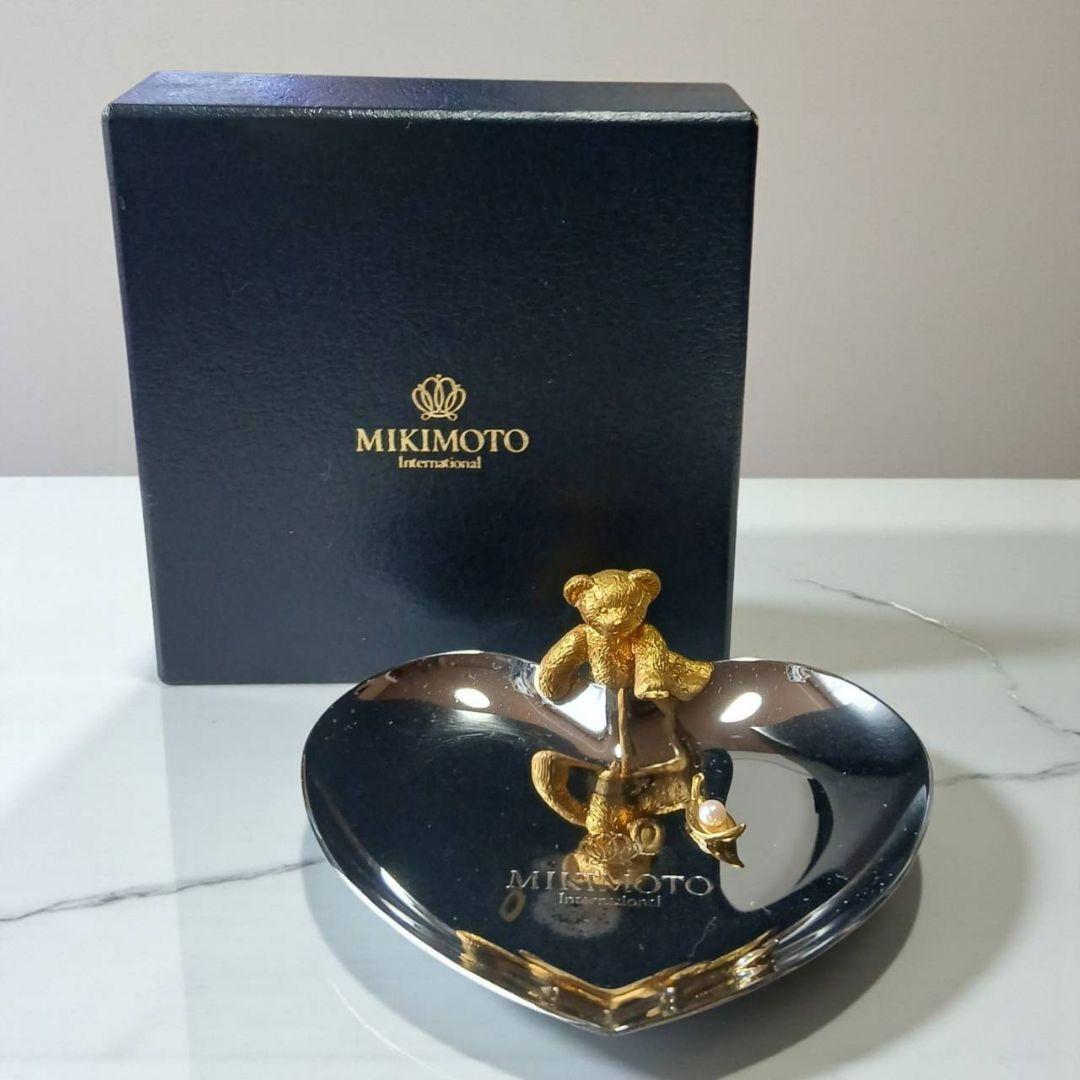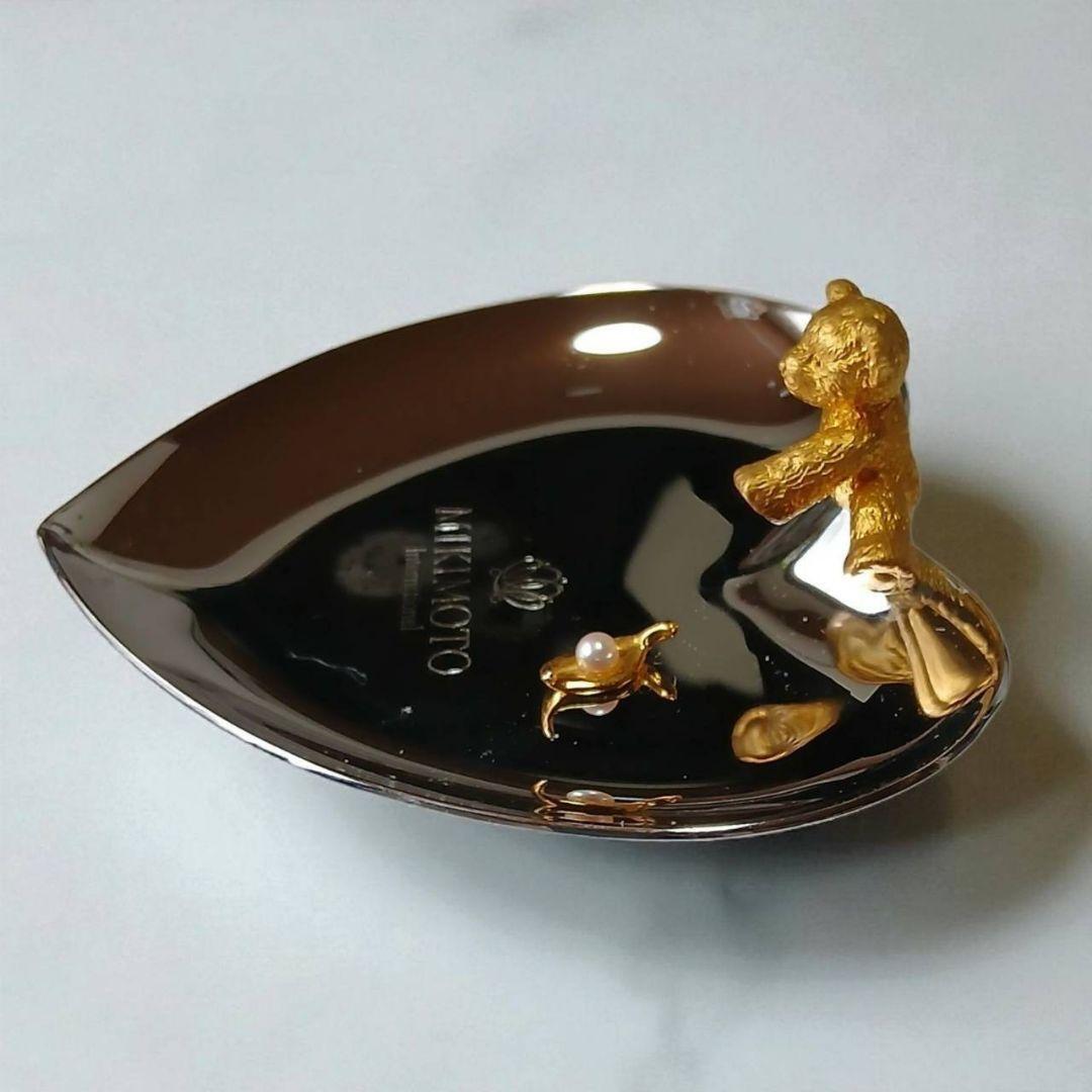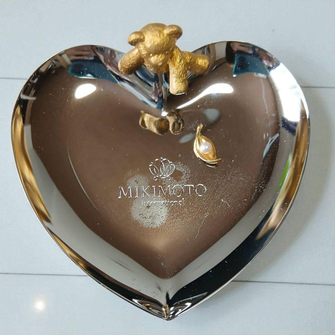 ミキモトの上品なハート型トレーに、ちょこんと座ったクマモチーフが愛らしい小物置きです。