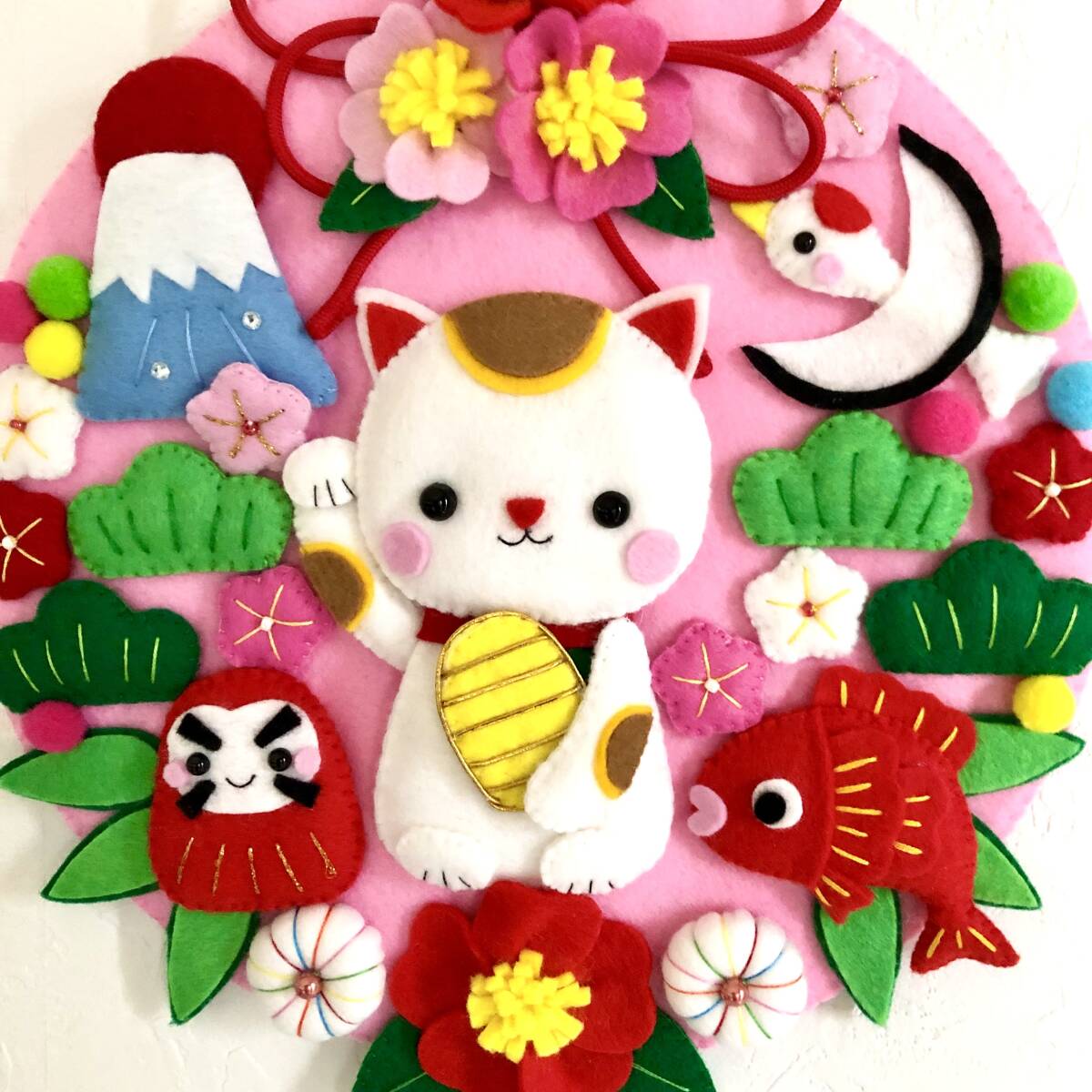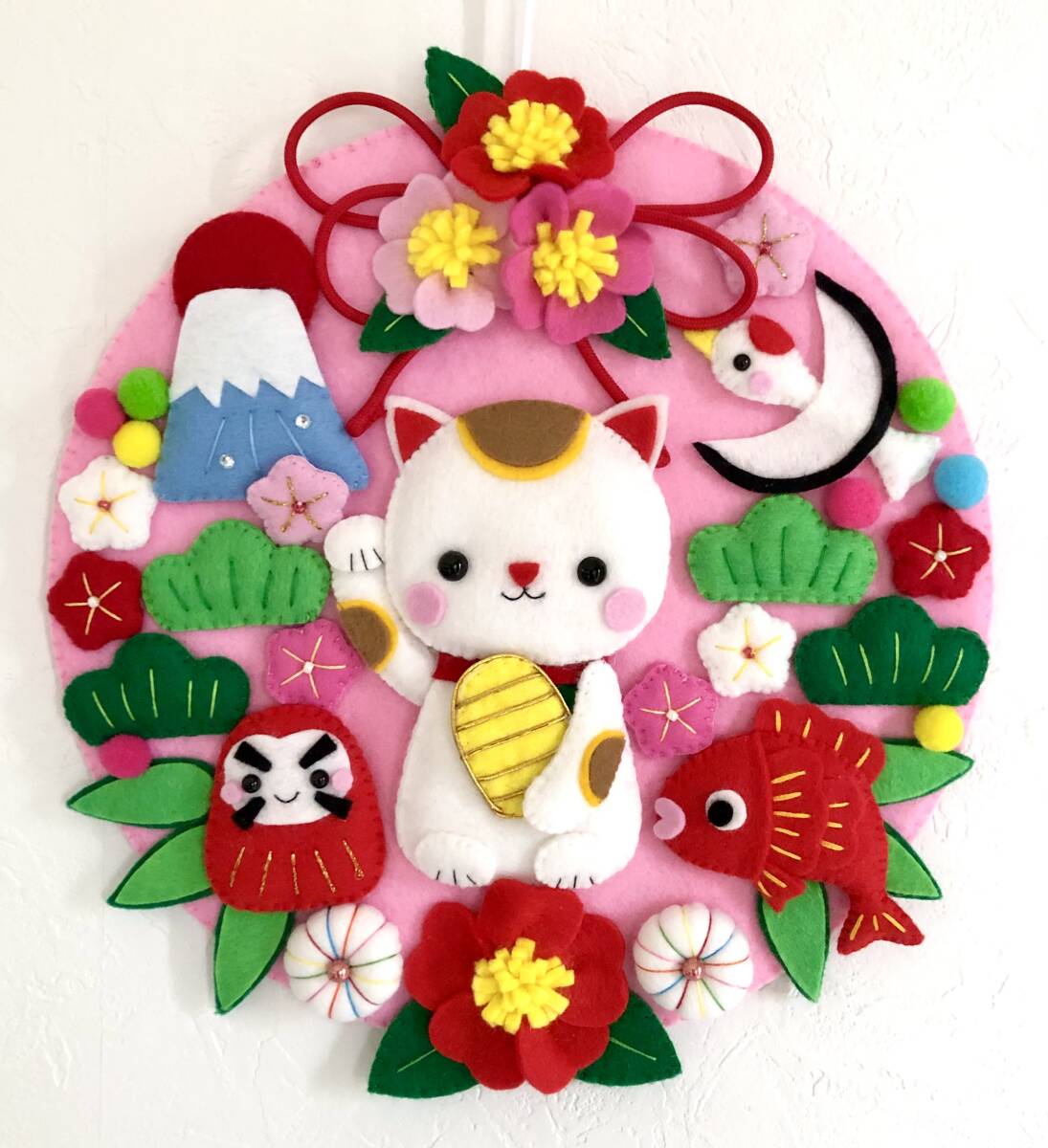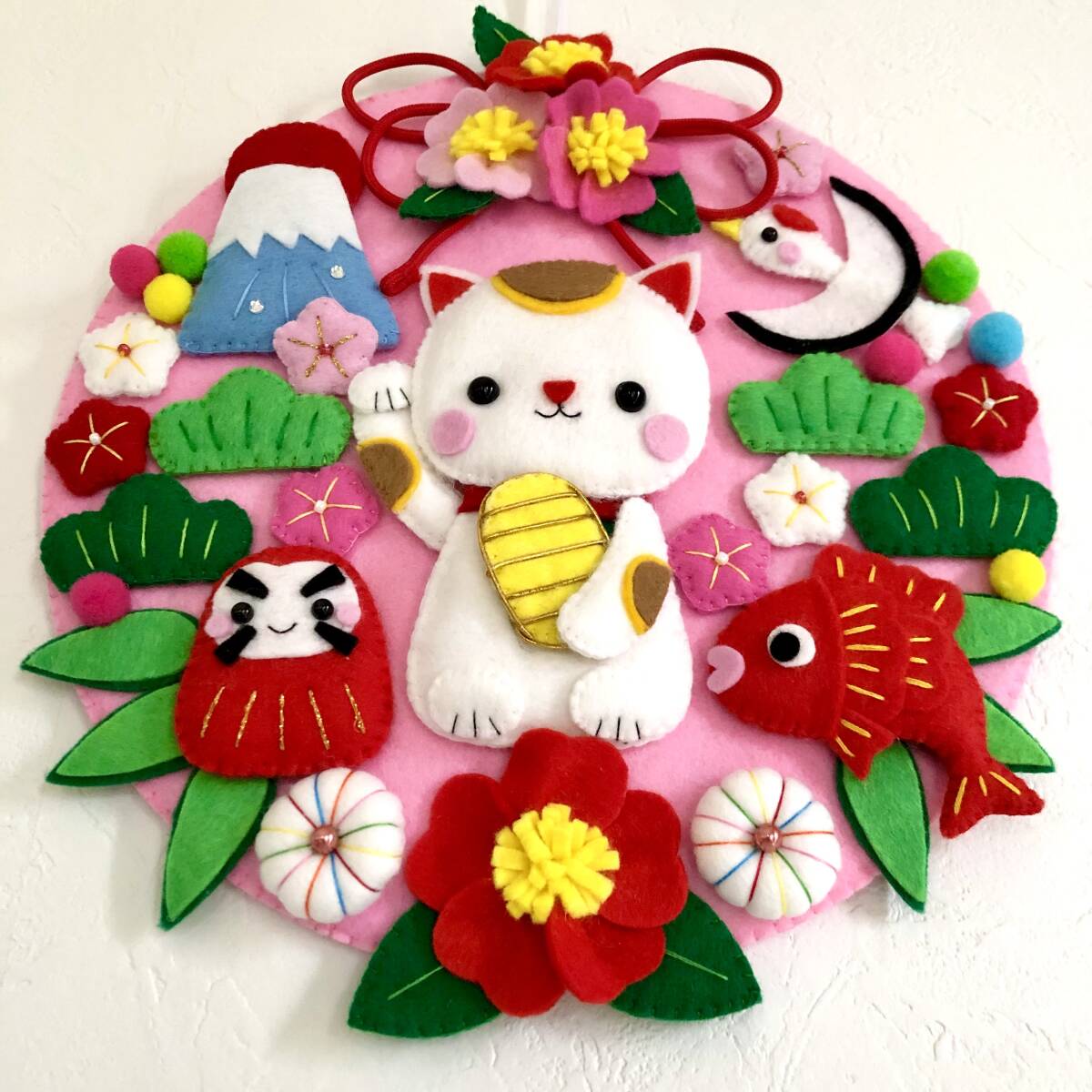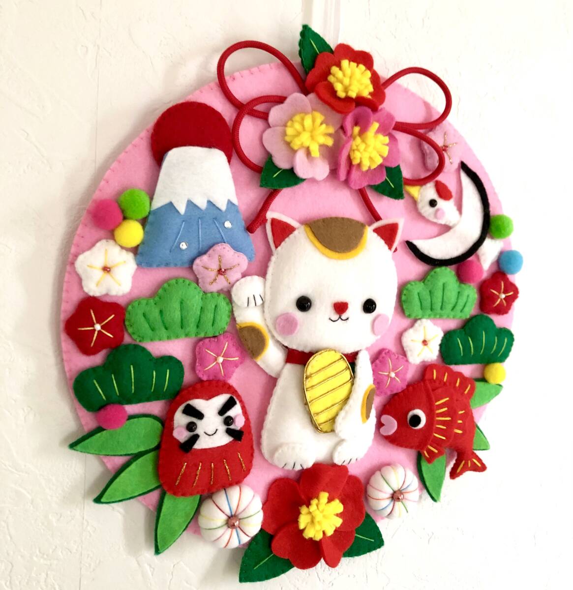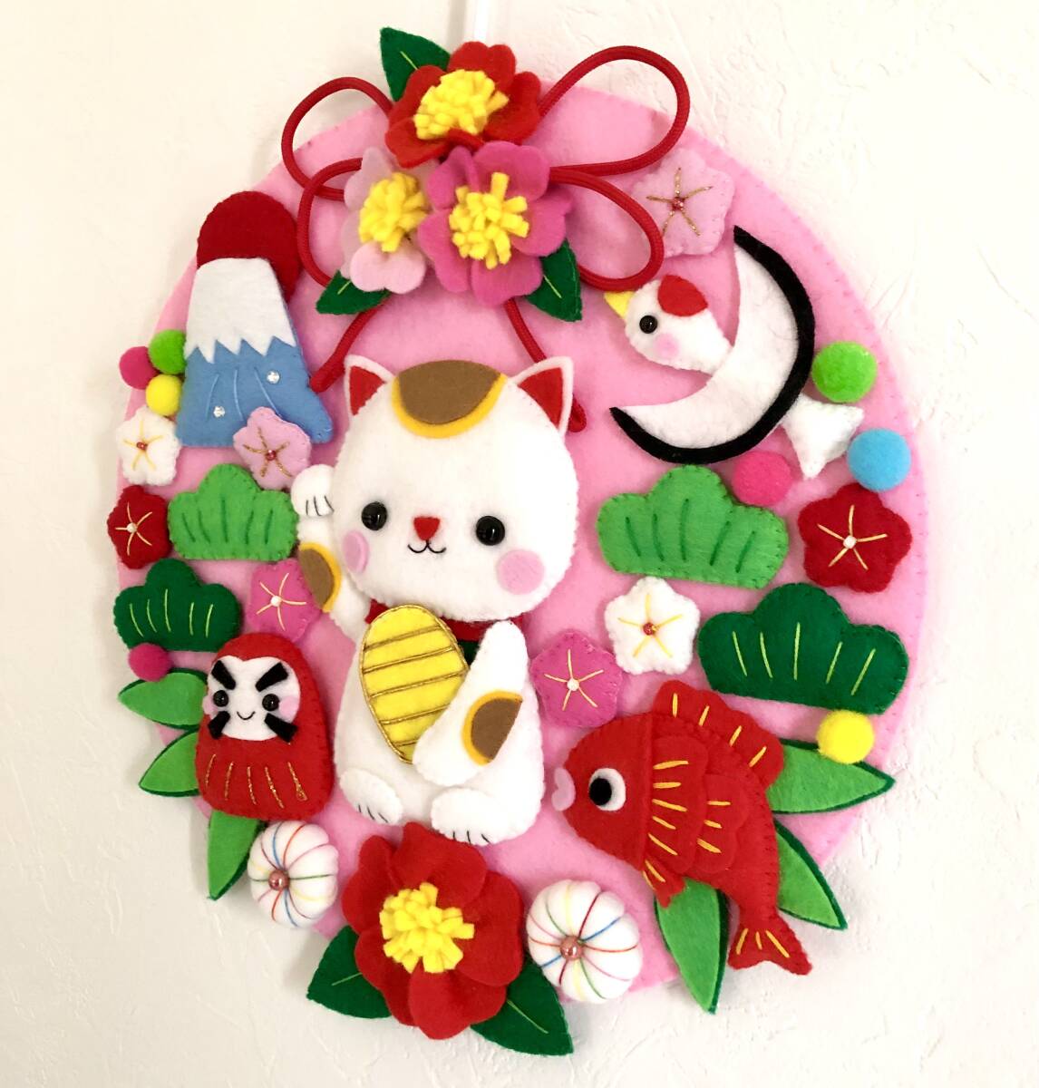 ハンドメイドのお正月をイメージしたリースを作りました。