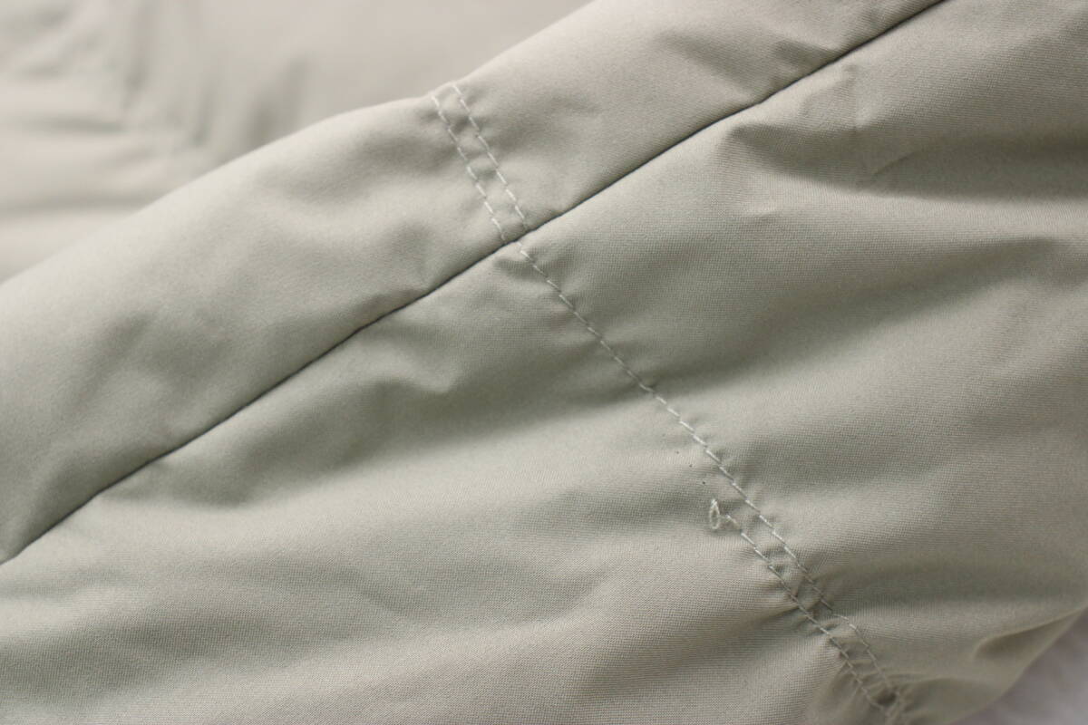 後ろ左下部に縫製不良(ステッチ切れ)があります。