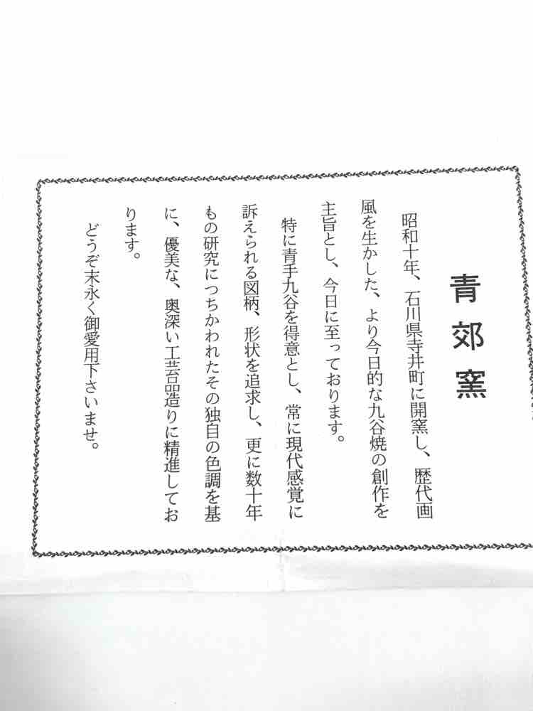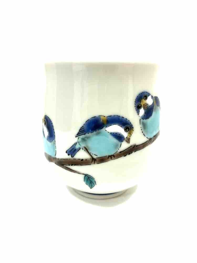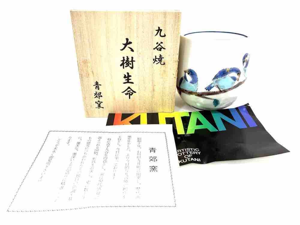 (M8496) 九谷焼 湯呑 青郊窯 新品 未使用 陶器 食器 コップ 木箱入り 陶芸品 カップ