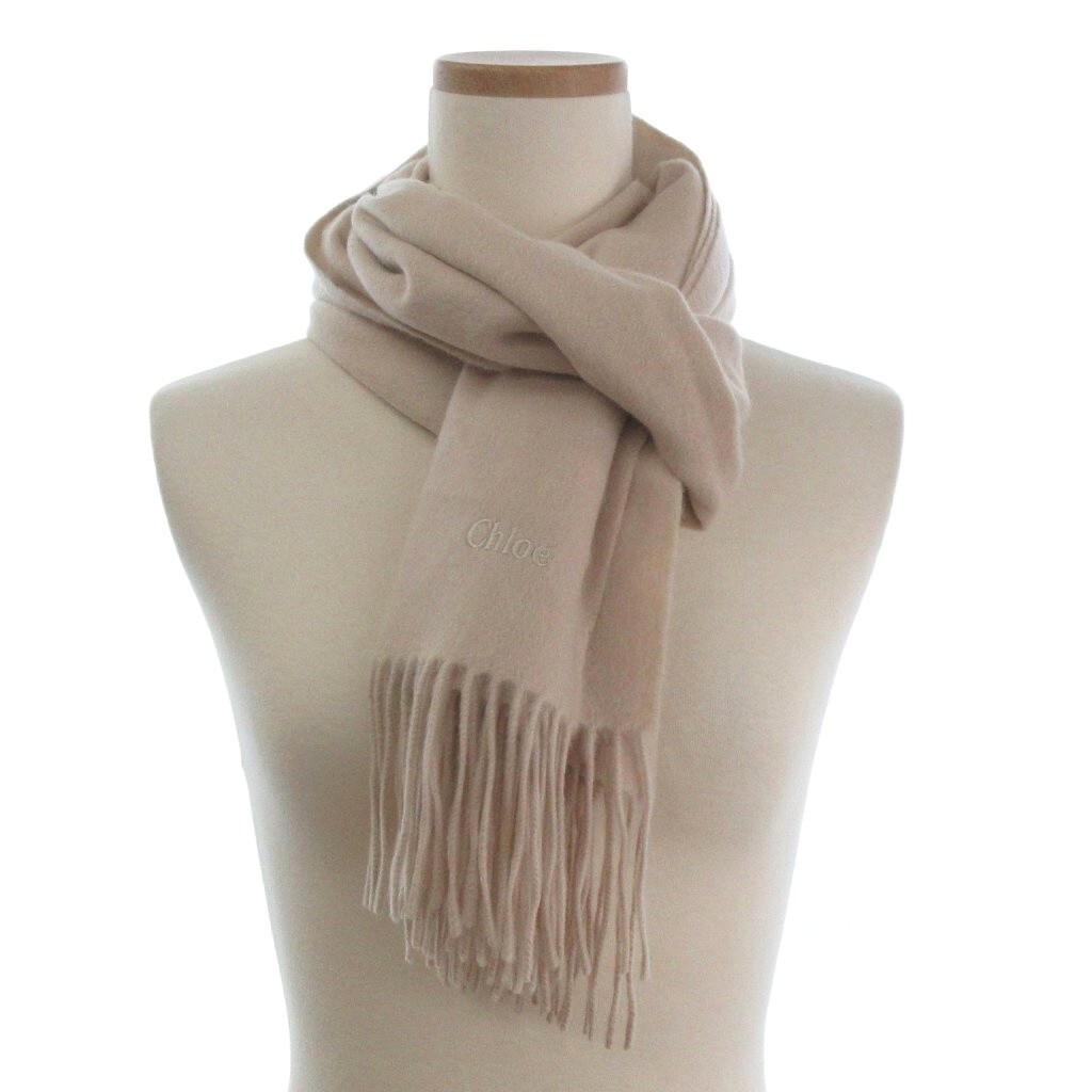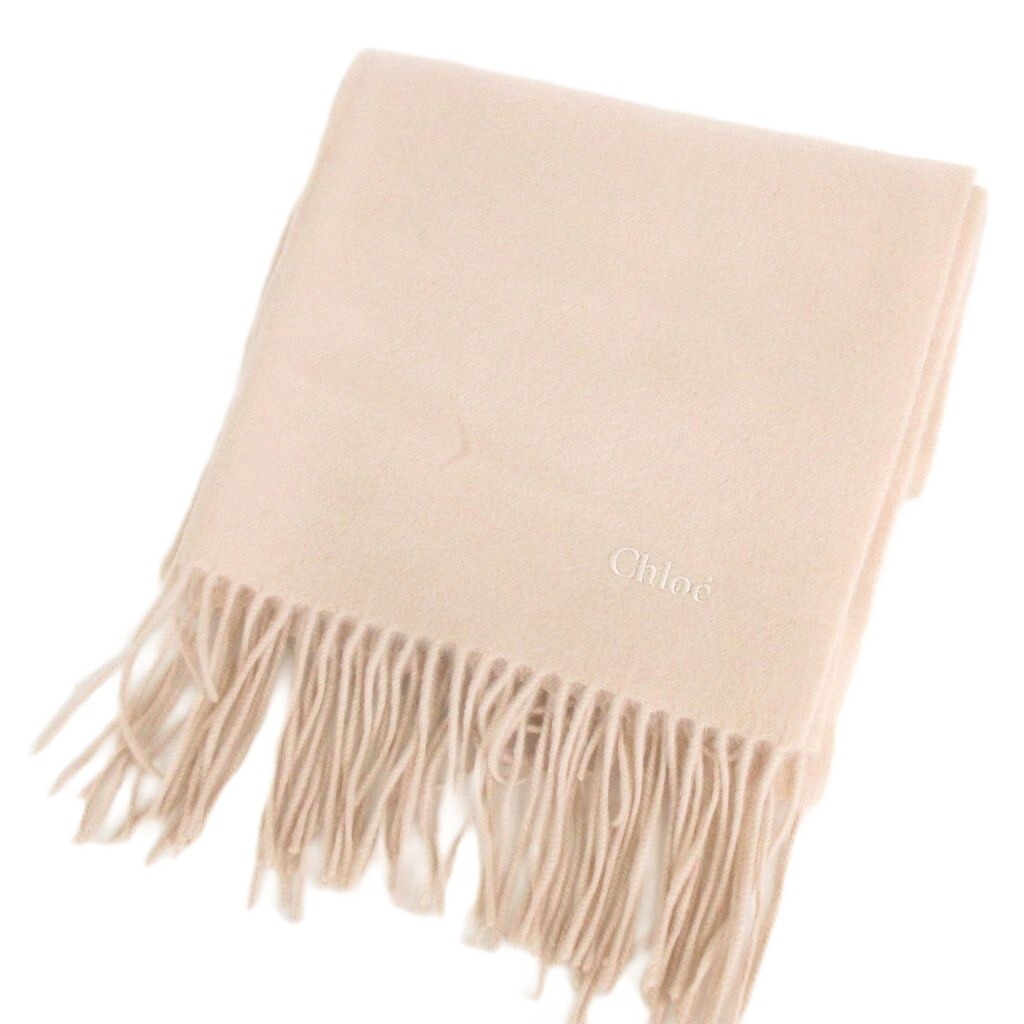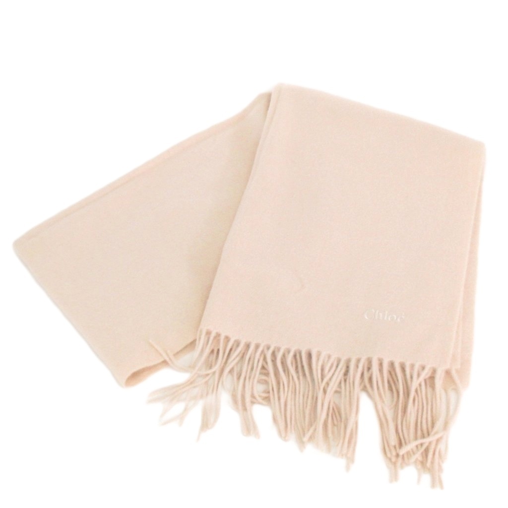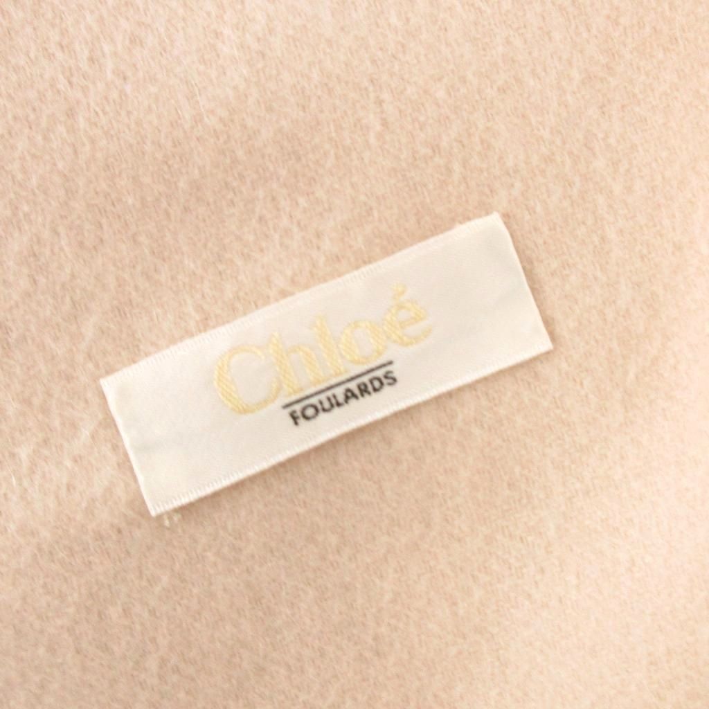 クロエ CHLOE マフラー ストール フリンジ ロゴ 刺繍 ベージュ 小物 ☆AA★ レディース