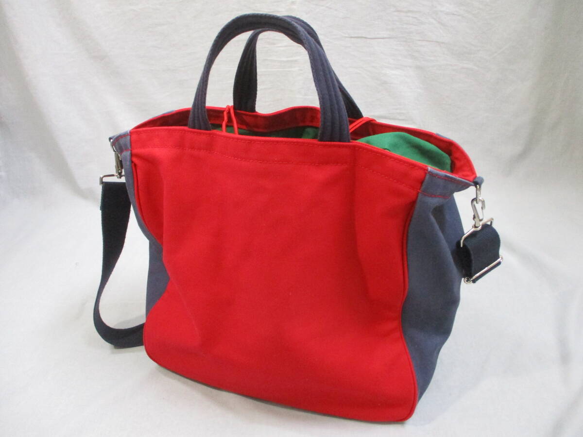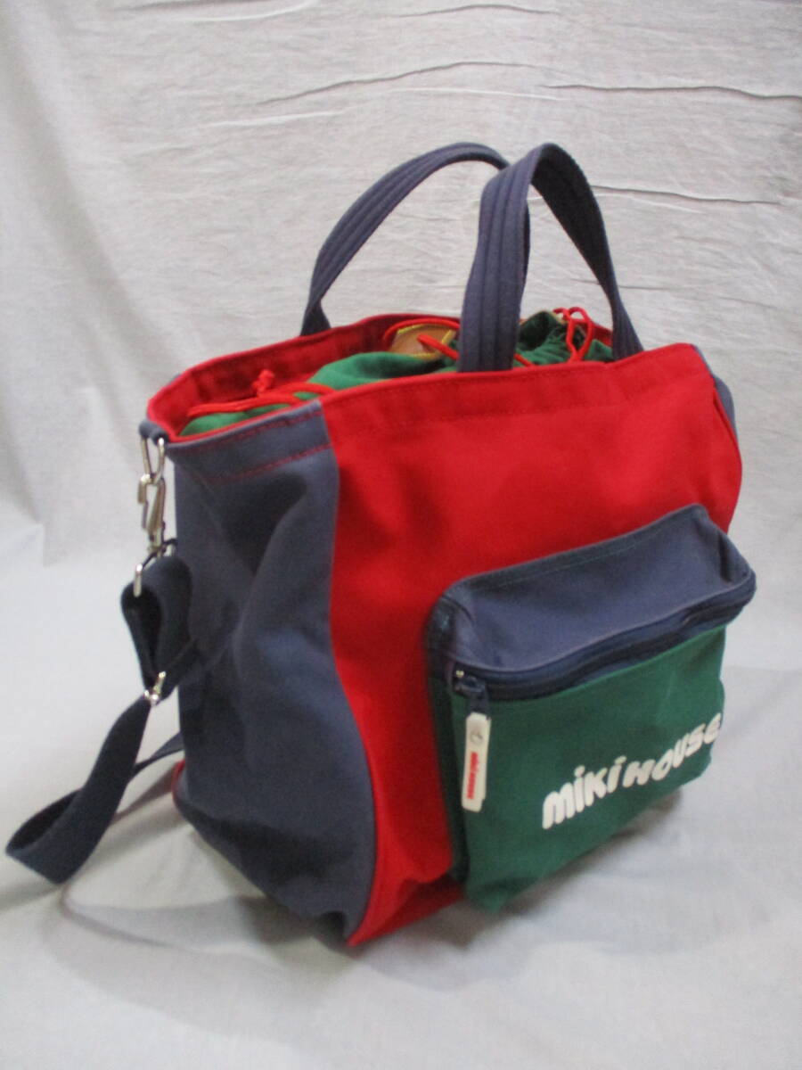 miki HOUSE ミキハウス ショルダー・ハンドバッグ 2WAY 巾着 タテ33cm×ヨコ35cm×マチ18cm レッド・ネイビー 日本製