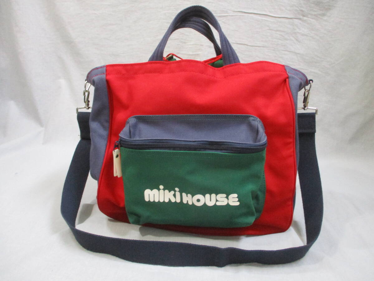 ☆商品名☆ miki HOUSE   ミキハウス   ショルダー・ハンドバッグ   2WAY   巾着   タテ33cm×ヨコ35cm×マチ18cm   レッド・ネイビー   日本製