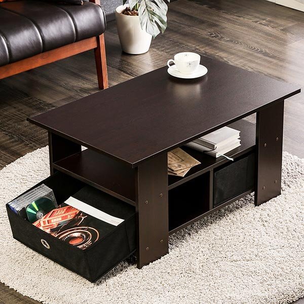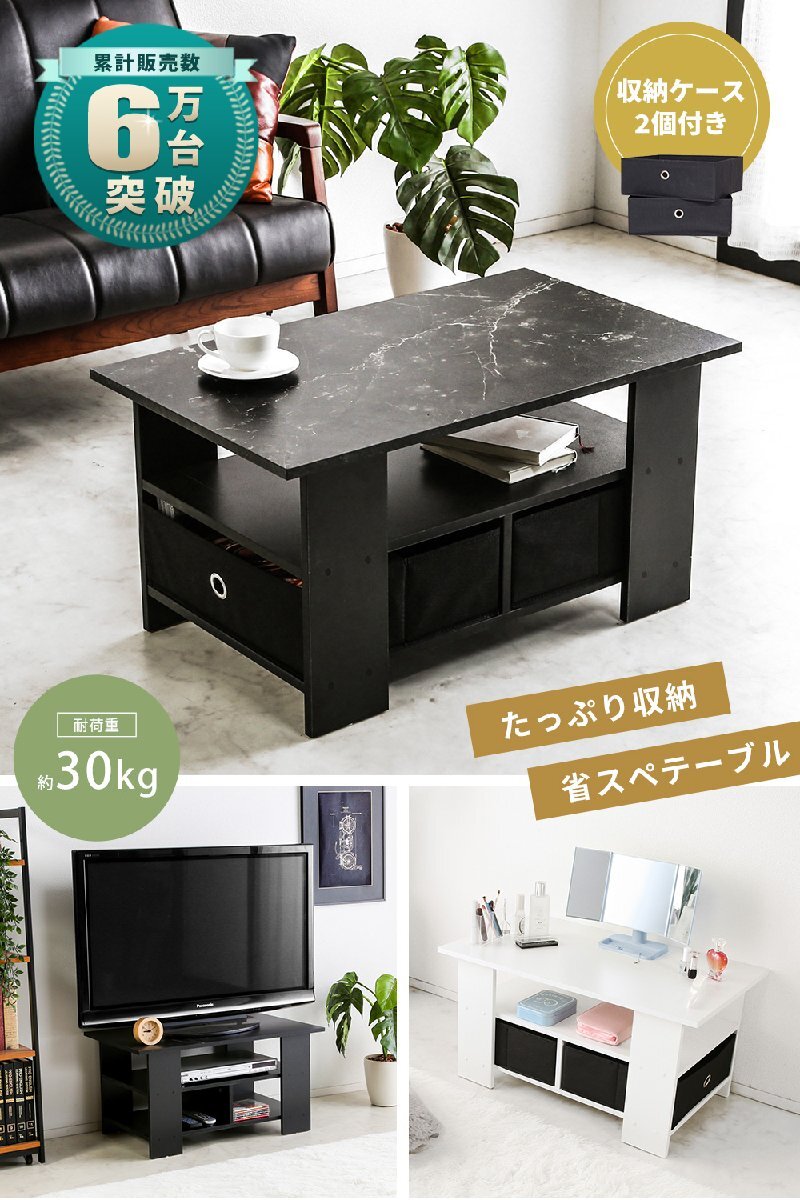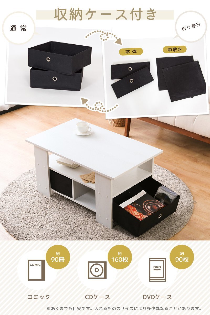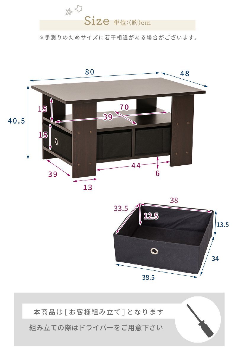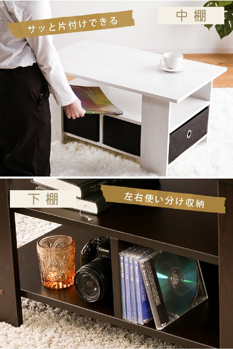 使いやすい収納付き 木製 センターテーブル 80×48cm 中下段で3分割 かんたん組立て ロータイプ 省スペース