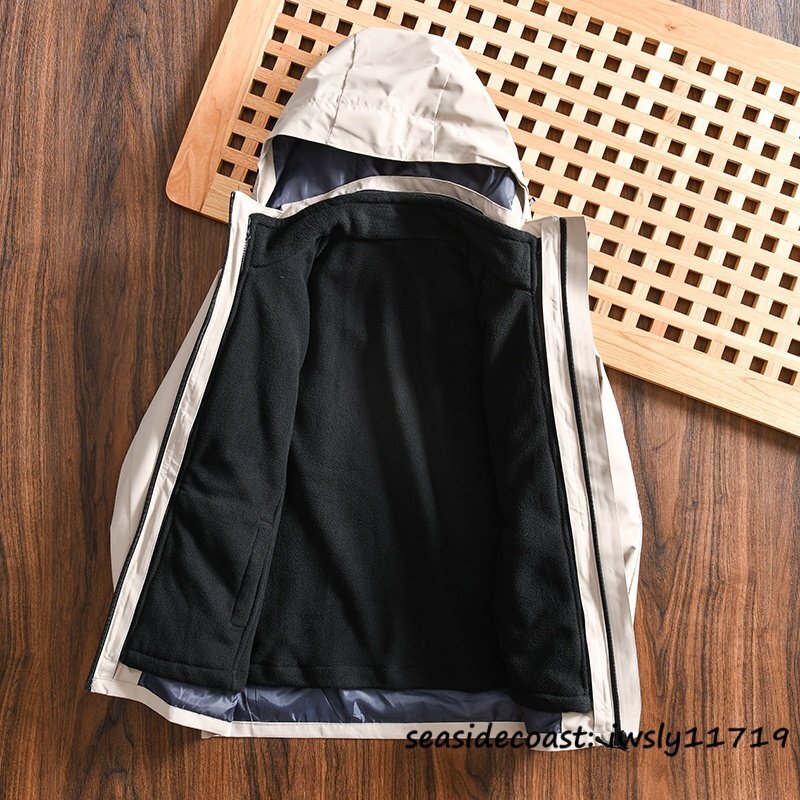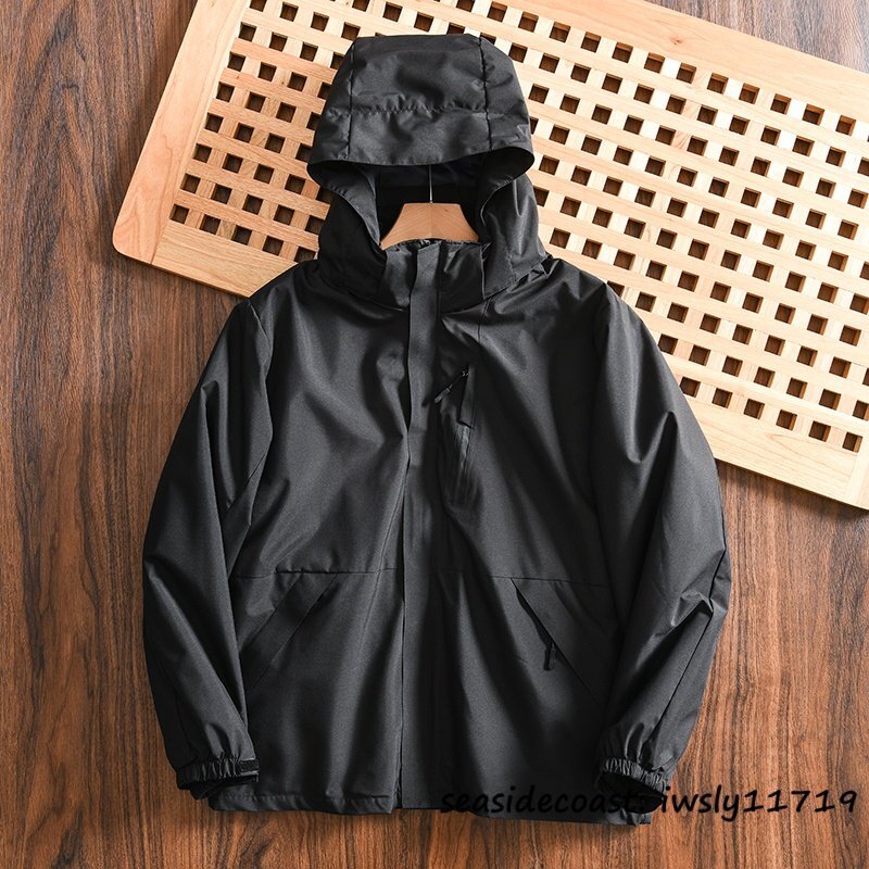 新品■マウンテンパーカ メンズ フード付き フリースジャケット 裏起毛 ボアジャケット 防風防寒 撥水 アウトドア アウター ブラック XL