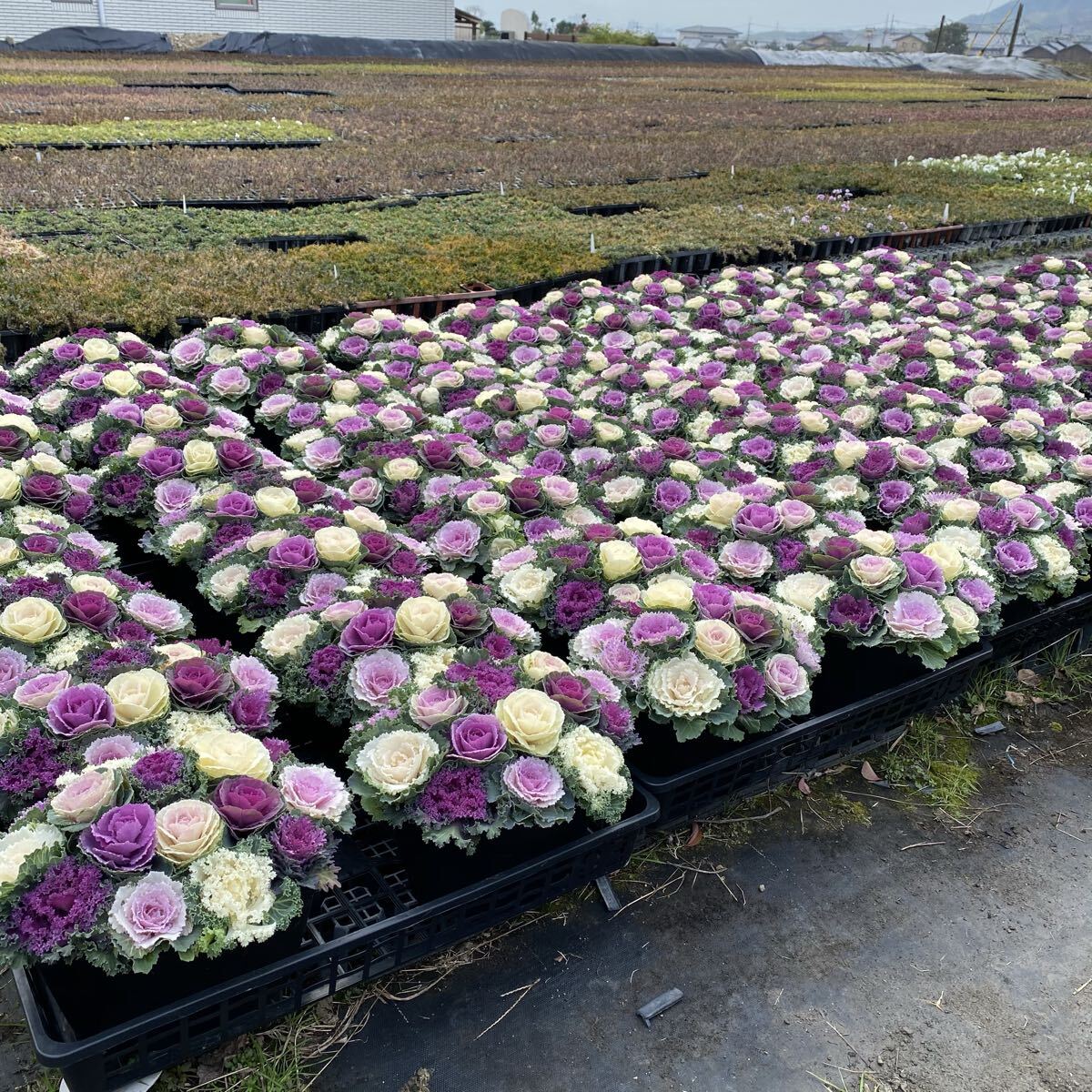 普段はエケベリア中心の多肉植物を生産していますが、同じ感覚で作れる葉牡丹苗も生産しています。