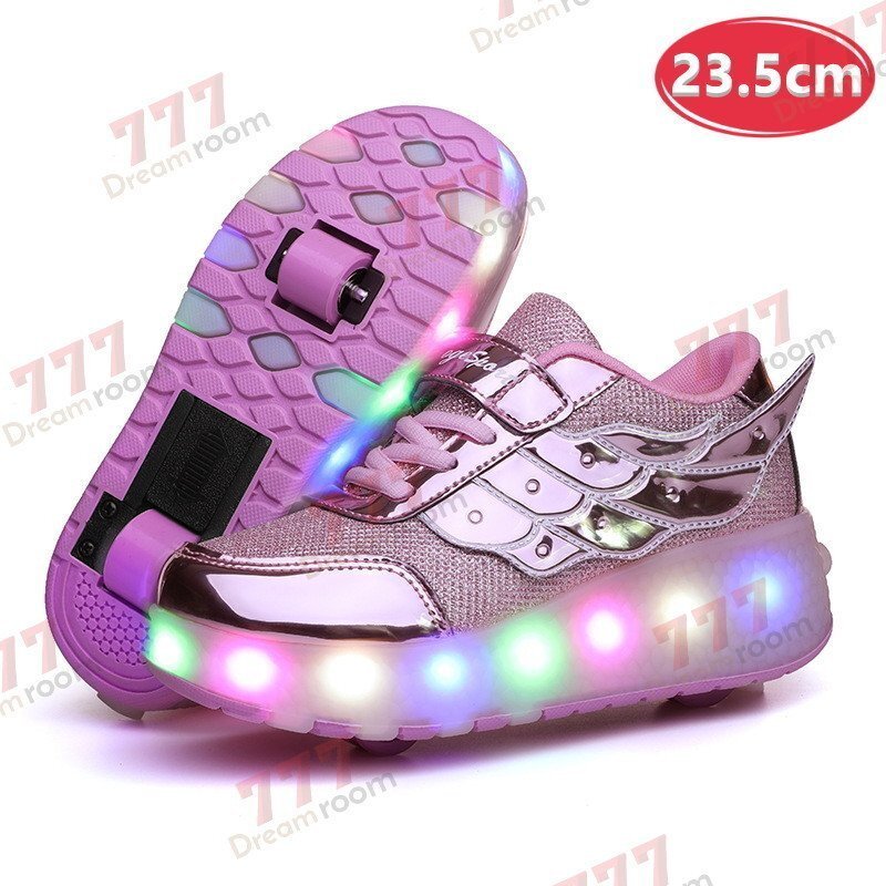 1スタ☆光る☆LED ライトアップスニーカー&ローラーシューズ 一体型 【K-374メタルピンク 23.5cm】夜間 スケート靴 反射材 ジョギング 自転車