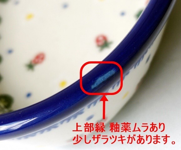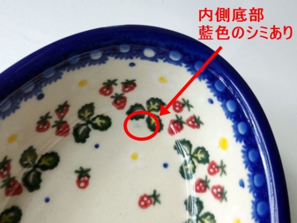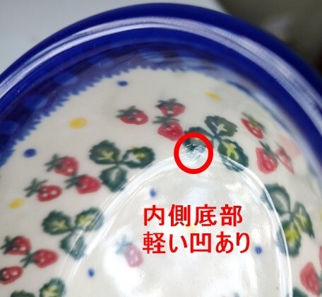 ・内側底部 藍色のシミ1か所、軽い凹1か所あり