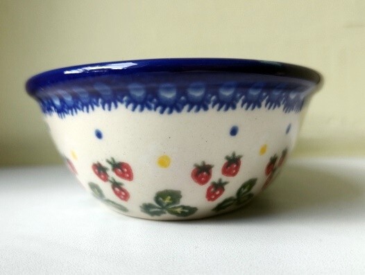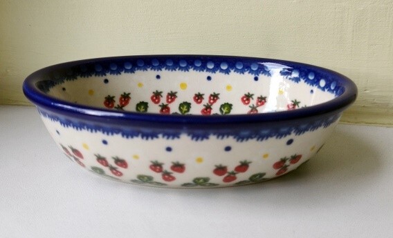 ポーランド ボレスワヴィエツ陶器 イチゴ&白花柄 オーバル皿/グラタン皿 です。