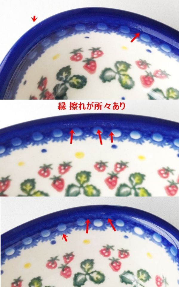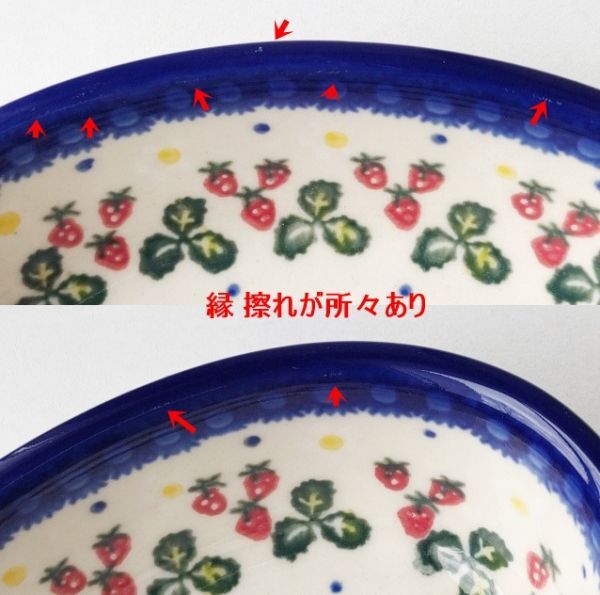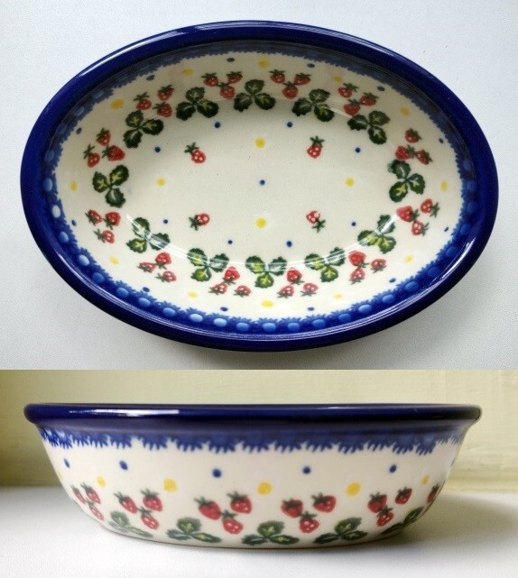 x449 ポーランド陶器 オーバル皿/グラタン皿 イチゴ&白花 ポーリッシュポタリー 食器 オーブン皿
