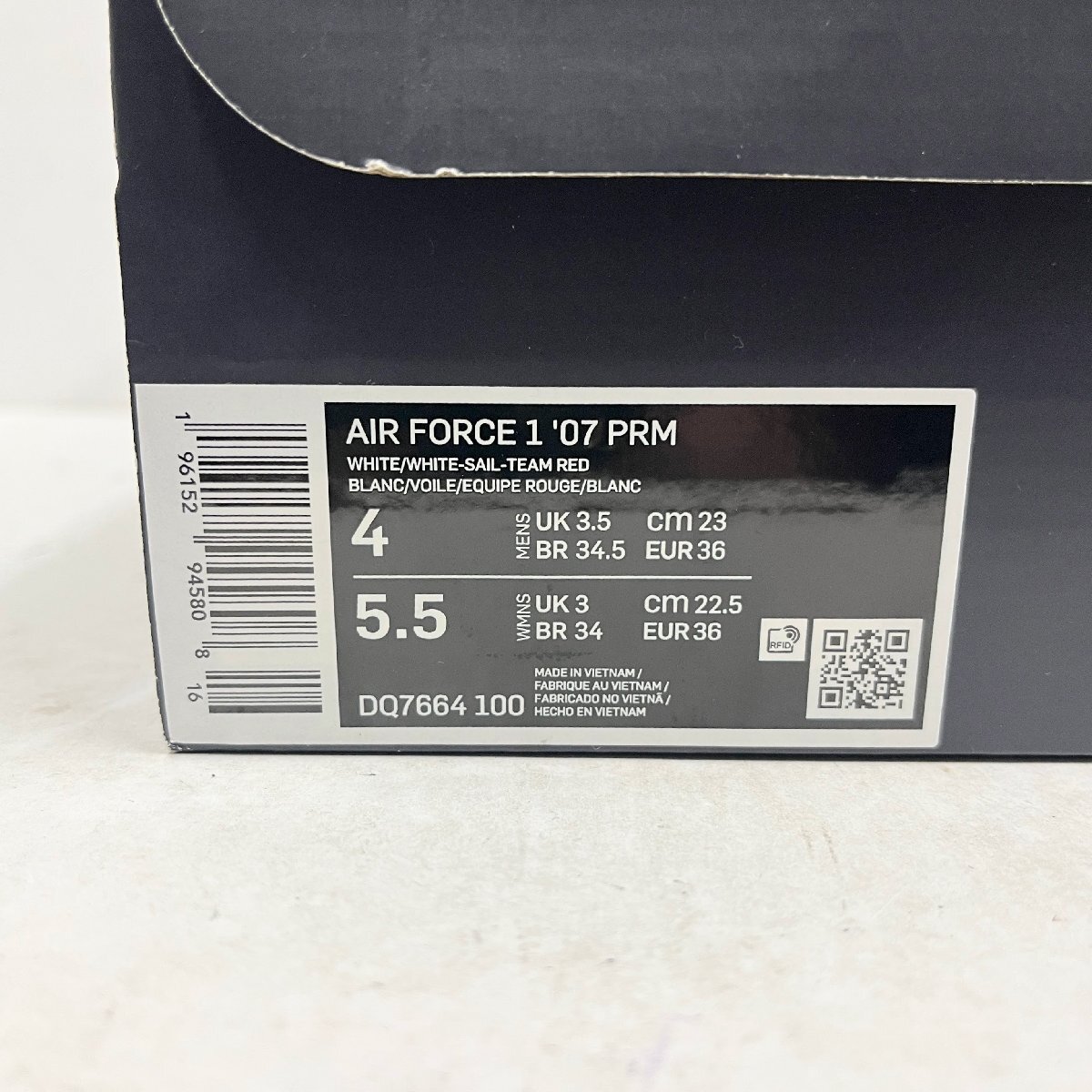 23cm NIKE AIR FORCE 1 07 PRM DQ7664-100 ナイキ エア フォース 1 ホワイト-セイル-チームレッド 2100000131082 H1000469 OSK