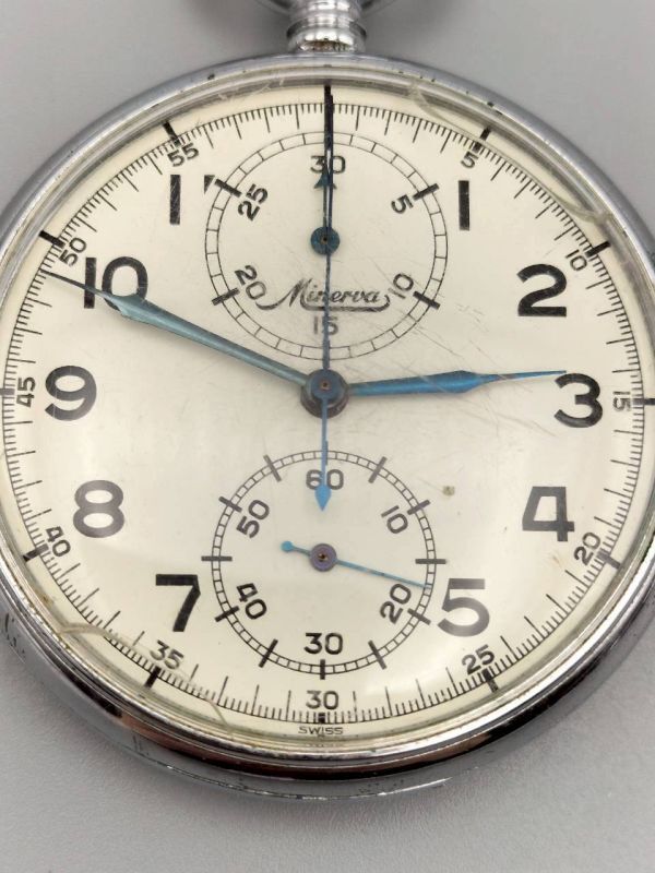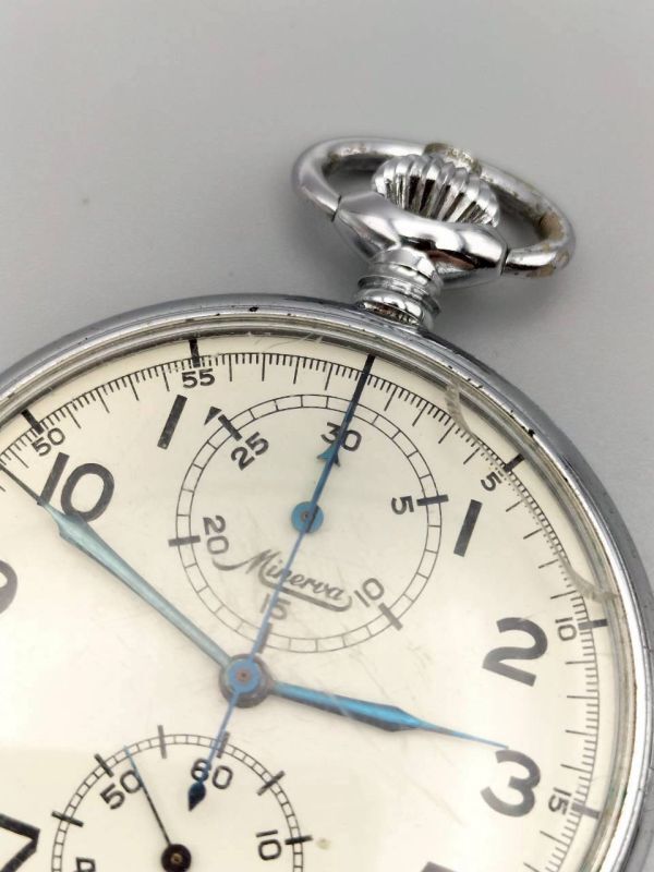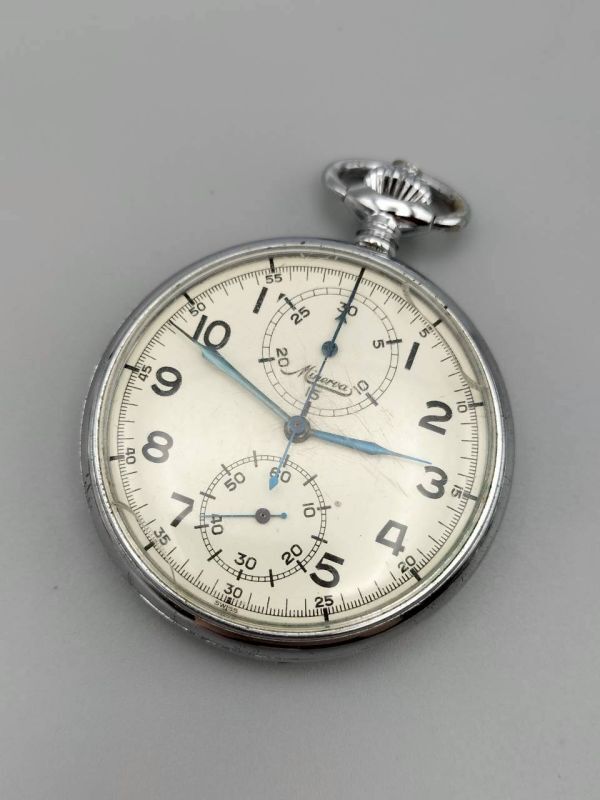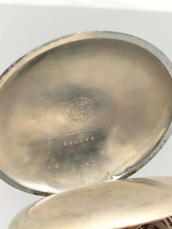 R7-667 1円~ 稼働品 ミネルバ Minerva 手巻き スモセコ 17石 懐中時計 ポケットウォッチ 白文字盤 シルバーカラー