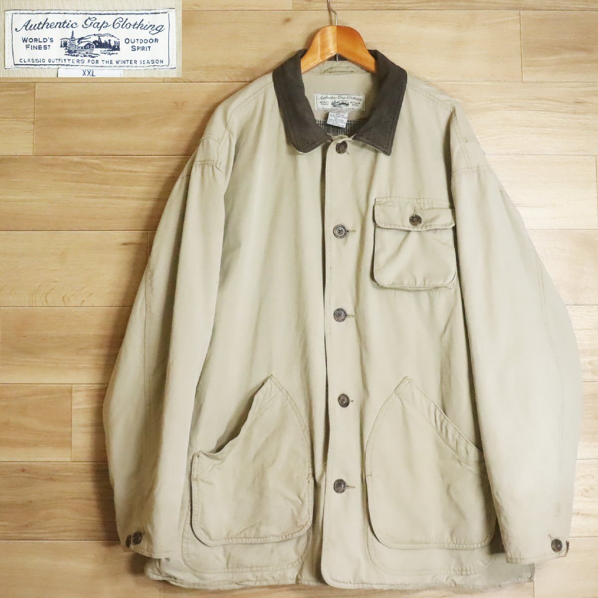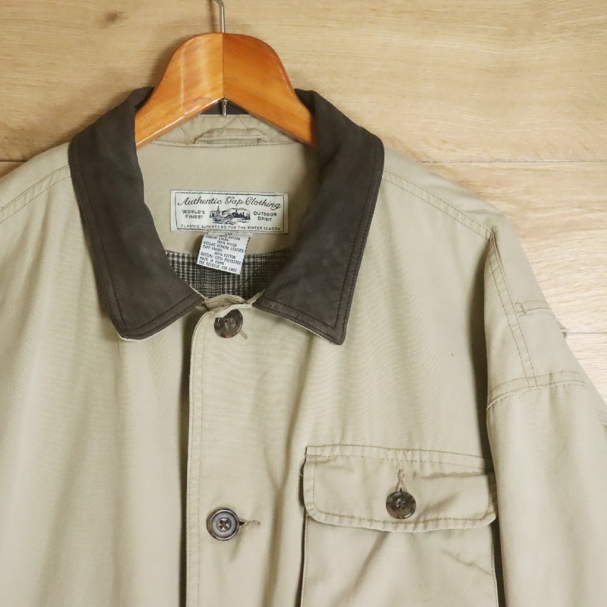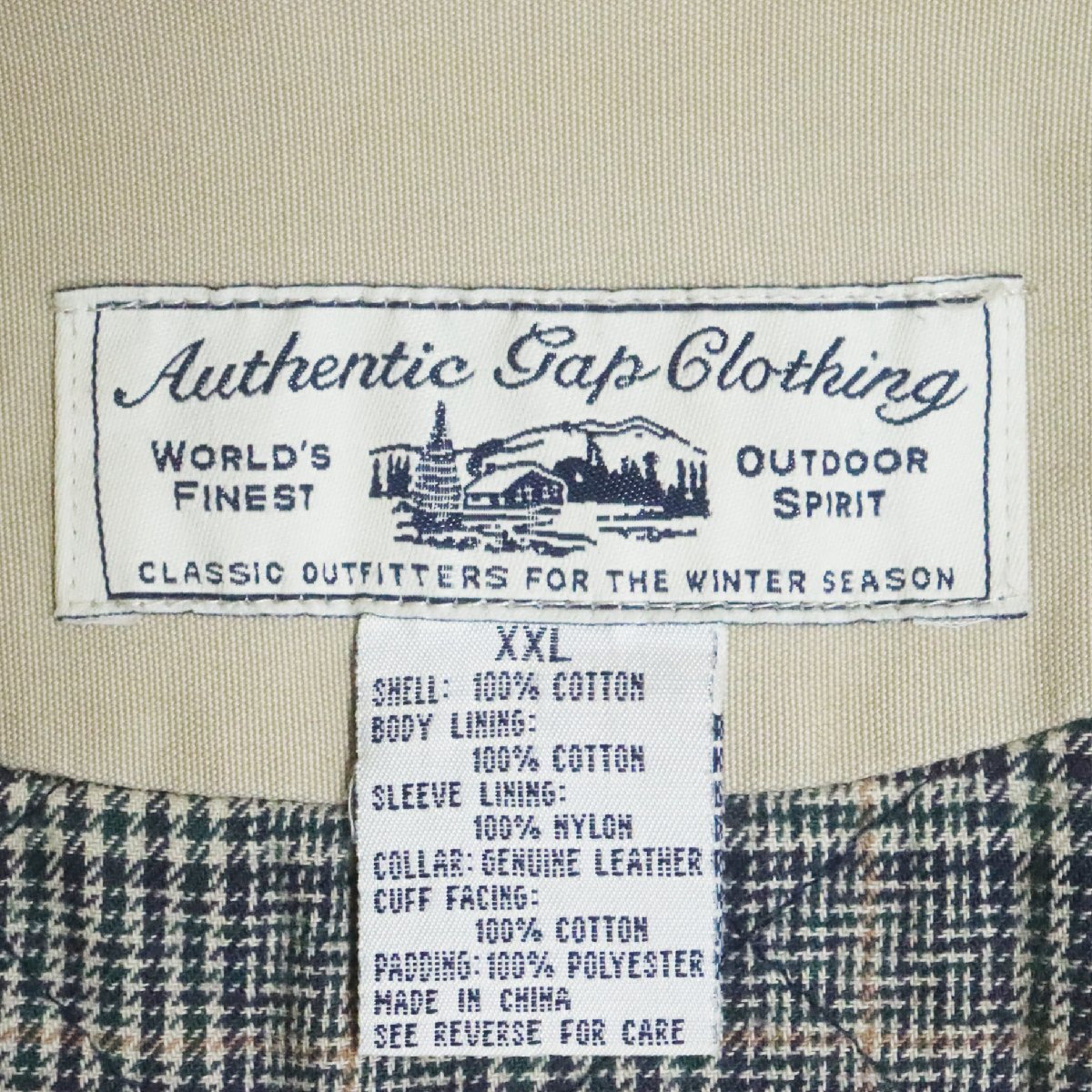 X5Y/R5.8-3 90s Authentic Gap Clothing ギャップ ハンティングジャケット カバーオール 裏チェック 裏キルティング XXL 襟レザー