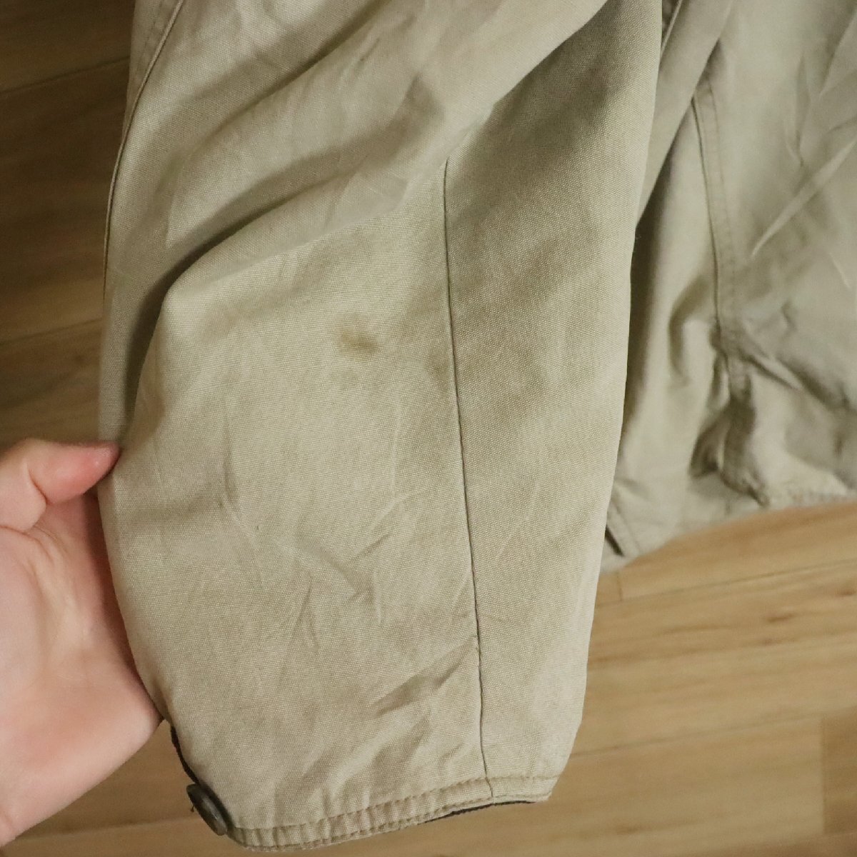 実寸は平置きで身幅79センチ、着丈83センチ、肩幅65センチ、袖丈64センチになります。