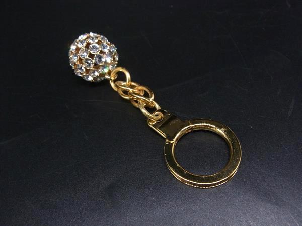 ■美品■ kate spade ケイトスペード ラインストーン キーホルダー バッグチャーム キーチャーム ゴールド系×シルバー系 DK3989