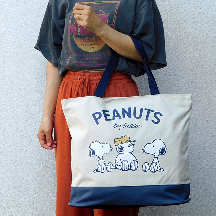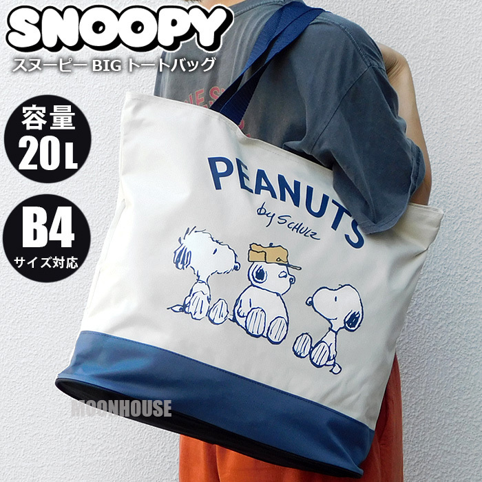 送料無料 スヌーピー 大容量 20L ビッグ トートバッグ メンズ レディース マザーズバッグ エコバッグ レッスンバッグ 肩掛け ネイビー★