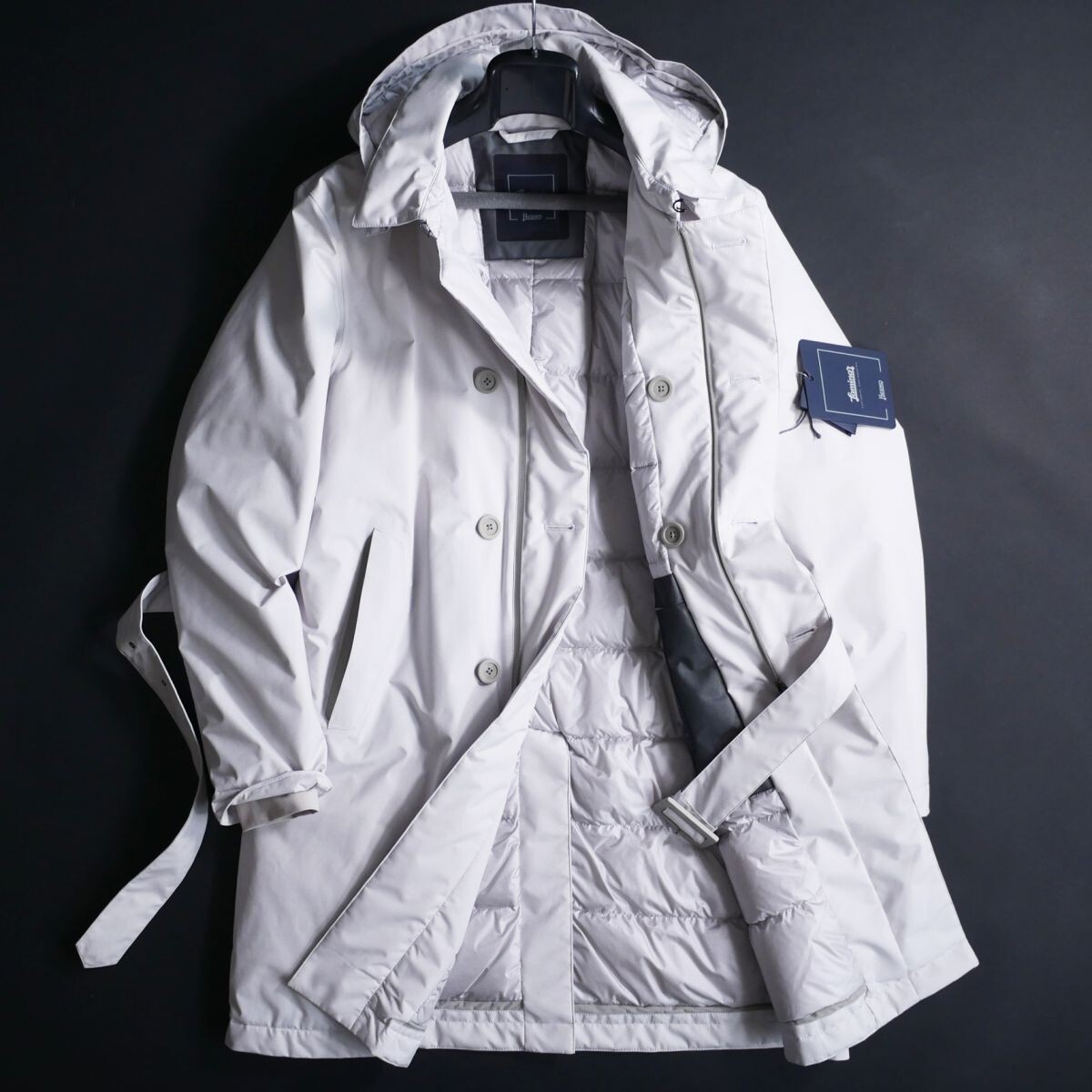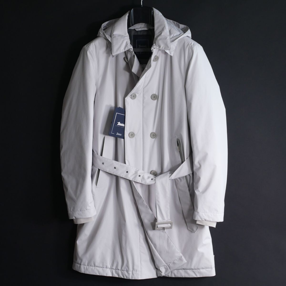 ●イタリアのプレミアムラグジュアリーブランド「HERNO(ヘルノ)」より、GORE-TEX仕様のグースダウントレンチコートでございます。ブランドを象徴する洗練されたクラシックスタイルに、先進の機能素材を融合させた、まさに“モダンラグジュアリー”を体現する逸品です。外側はスタイリッシュなトレンチで、内側は真冬も暖かな最高峰のヘルノのグースダウンとなります、最強のコンビです。定価ご購入でも価値のある「名品」かと思います。こちら一点のみ入荷です。 ●モデルは、HERNOのハイエンドライン「Laminar(ラミナー)」コレクション。サルトリアル(仕立て服)の美学を追求しながら、GORE-TEXファブリクスによる防風・防水・透湿性能を兼ね備え、都市生活から出張・旅行まで、あらゆるシーンで活躍する一着となっております。 ●軽量ながらも「真冬も暖かな」保温性に優れたグースダウンを中綿に使用。内側はふっくらとしたダウンの膨らみで、外側はスマートなシルエットに仕上げられており、着ぶくれ感なくエレガントに着こなせます。ダブルブレストの構築的なデザインに、共布ベルトを配したクラシックな佇まいが印象的です。スマートながらも、冬も暖かなトレンチコートです。 ●背面にはガンフラップとセンターベントを備え、ディテールの美しさはまさにイタリアンテーラリングの真骨頂。取り外し可能なフード付きで、天候やスタイリングに応じて自在にアレンジしていただけます。袖口の内リブ構造が防寒性を高め、細部まで緻密に設計された仕立てとなっております。 ●HERNOが誇る機能的エレガンスを体現したコートは、ビジネスからカジュアルまで幅広く対応。ラグジュアリーな素材感とスマートなデザインが、冬のスタイルを格上げいたします。 ●フロントダブルジップ。表内ジップポケットあり。ジャージ生地をあしらった内袖口。裏生地付。フードは着脱式。後ろ裾スリット。共布ベルト付、バックルは取り外し可能です。ケープドバックスタイル。スペアボタン付。 ●色:ややグレーがかったようなビアンコ系 ●定価:231,000円 ●素材: 外側:ポリエステル 100%*樹脂素材コーティング(GORE-TEX) 詰め物:グースダウン(ダウン 80%/フェザー 20%) 裏生地:ポリアミド100% 内袖口ジャージー生地:ポリアミド72% エラスタン28% ●サイズ:50 *日本サイズ概ねLサイズ辺りとなりますが、下記詳細サイズもご確認の上、よろしくお願いいたします。 ●詳細サイズ(cm)置いた状態で: 肩幅:46.5(右肩端~左肩端の直線距離) 身幅:59(右脇下~左脇下の直線距離) 袖丈:65.5(肩の縫い目~袖先) 着丈:94(襟の付け根~裾まで。襟の幅を含んでいません) 詳細サイズご参考 ※大よその採寸となります。 ※お品物はタイトルにございますもののみとなり、着合わせのお洋服や小物などがございましても、それらは含まれません。 ※素材の特性上、多少のことはご容赦くださいませ。 ※ご質問は、必ずご入札前にお願いいたします。(ご入札後、ご落札後の取引ナビからのご質問はお避け下さい) ☆☆☆ご連絡・お支払い(Yahooかんたん決済)☆☆☆ ご落札後24時間以内に、取引ナビからご連絡(お名前・ご住所全て。*サイズ選択いただけるオークションはサイズのご連絡も含め)・Yahooかんたん決済可能な方。 *銀行振込の場合は翌営業日、コンビニ決済はご落札後2日目の午前中まで、お支払いをお済ませ下さいませ。 電話応対は、一切致しておりません。取引ナビをご利用下さい。 ☆☆☆受け取り連絡☆☆☆ 製品到着後24時間以内。*出来る限り、到着日当日に受け取り連絡頂きましたら幸いです。 *配達日指定ご希望の際は、ご落札後、最長4日以内に「受取連絡」ができるようお願いします。(北海道・沖縄・離島の方は5日以内) *特別に記載をしました際には、そちらを優先させていただきます。 ☆☆☆同日に2点以上のご落札の場合☆☆☆ 「まとめて取引」を、最初にご選択ください。 *「まとめて取引」を、お届け情報などご入力前にご選択ください。同梱発送となり、一品分の送料のみとなります。 *「まとめて取引」をご選択されなかった場合、出品者側では送料訂正できませんので、予めご了承くださいませ。 新規IDの方は、こちらを必ずご覧くださいませ ☆☆☆ご入札及びご落札のキャンセルはしていただけません☆☆☆ ![]() 【お支払い】 合計金額 = ご落札価格 + 送料 ◆Yahooかんたん決済(ご落札後24時間以内に支払い手続きを完了ください。) *2点以上同日ご落札の場合は、『まとめて取引』をお選びください。 *領収書がご必要の際:ご落札後Eメールアドレスを、取引メッセージにてお知らせ下さい。電子領収書をEメールに添付してお送り致します。 Yahoo!かんたん決済は、ヤフオク!の商品代金の支払い、受け取りを簡単安心に行える決済サービスです。ご落札者様は、クレジットカード、コンビニ支払い、銀行振込はもちろん、Yahoo!マネー、Tポイントも利用できるお支払い方法です。 【発送】 発送は、クロネコ宅急便(元払い)のみとなり