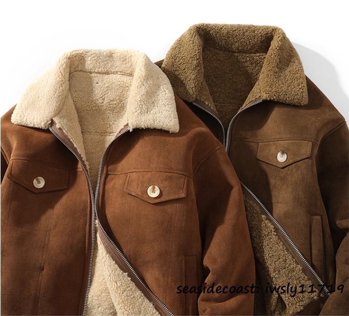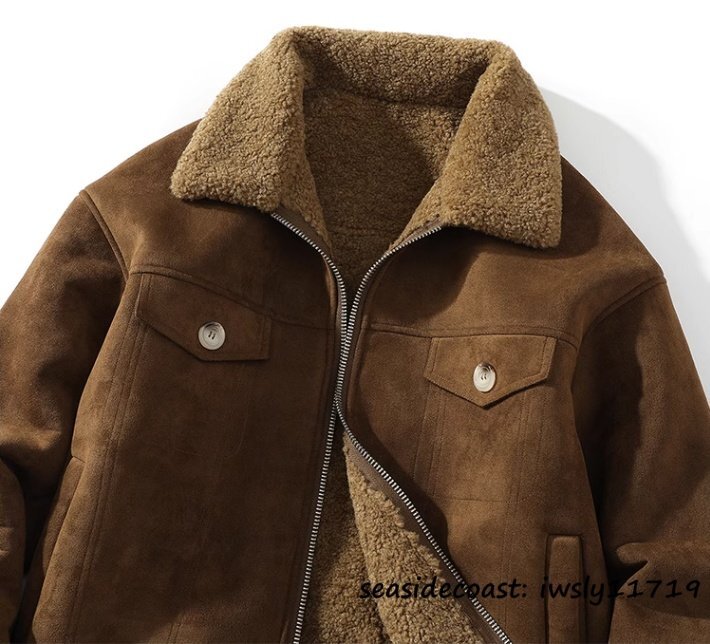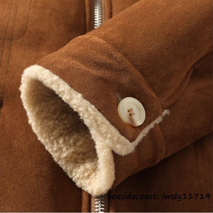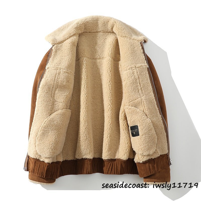 極美品◆ムートンコート メンズ ブルゾン ジャンバー 超防寒 厚手 暖かい 毛皮 ファーコート ジャケット アウター ライダース キャメル 3XL