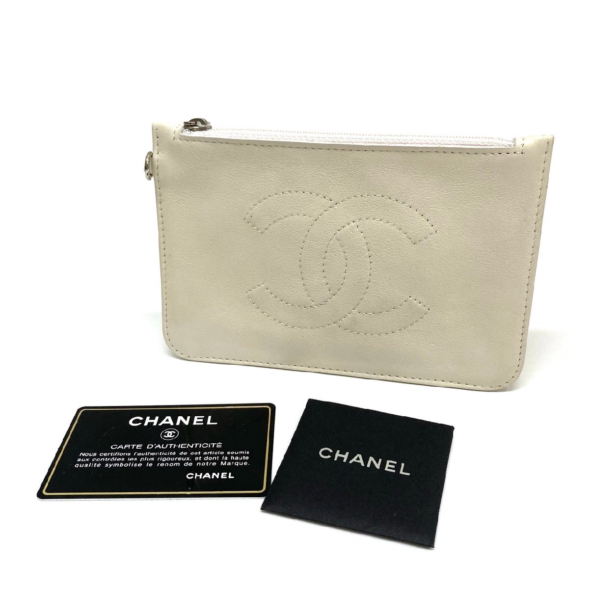 シャネル ポーチ ココマーク ホワイト×ピンク レディース