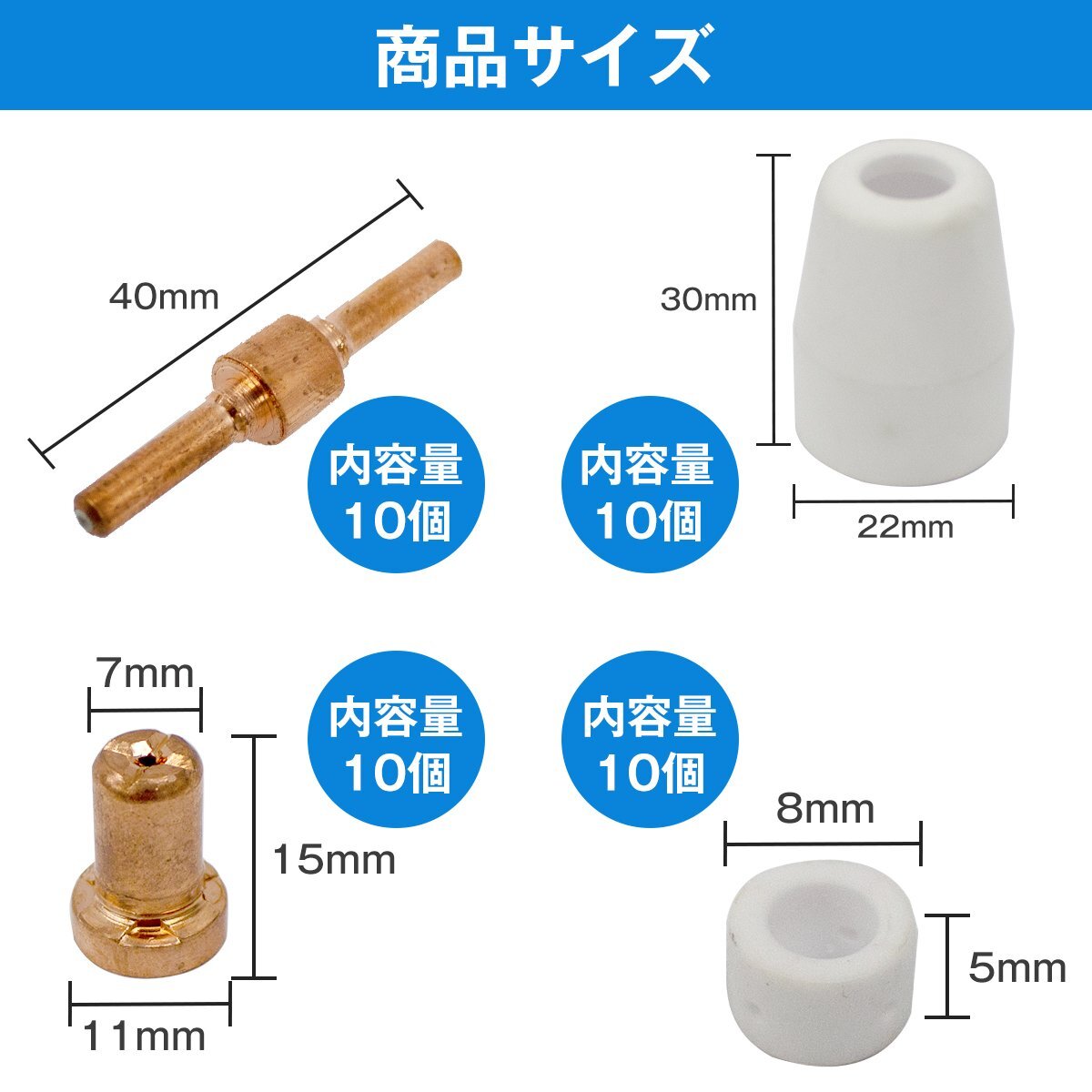 【新品即納】CUT-40 互換 10セット プラズマ カッター トーチ ロング ノズル チップ 先端 消耗品 切断機 鉄板 CUT40 10個 電極 PT-31 PT31