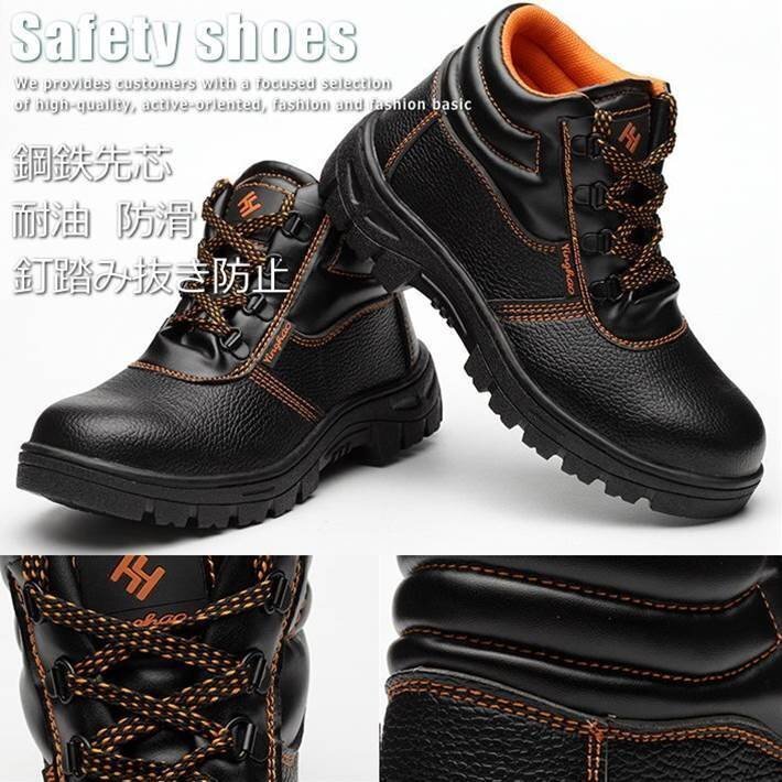 安全靴 鋼鉄先芯 スニーカー ブーツ シューズ メンズ 釘踏み抜き防止 靴 耐油 防滑 7995363 【A】 ブラック 41 25.5cm 新品 1円 スタート